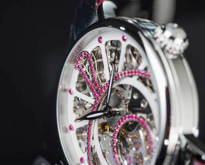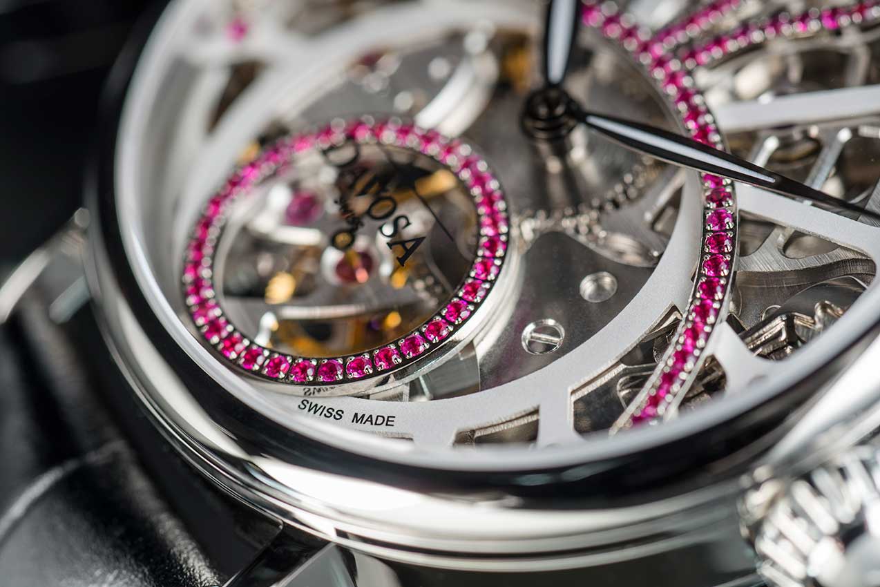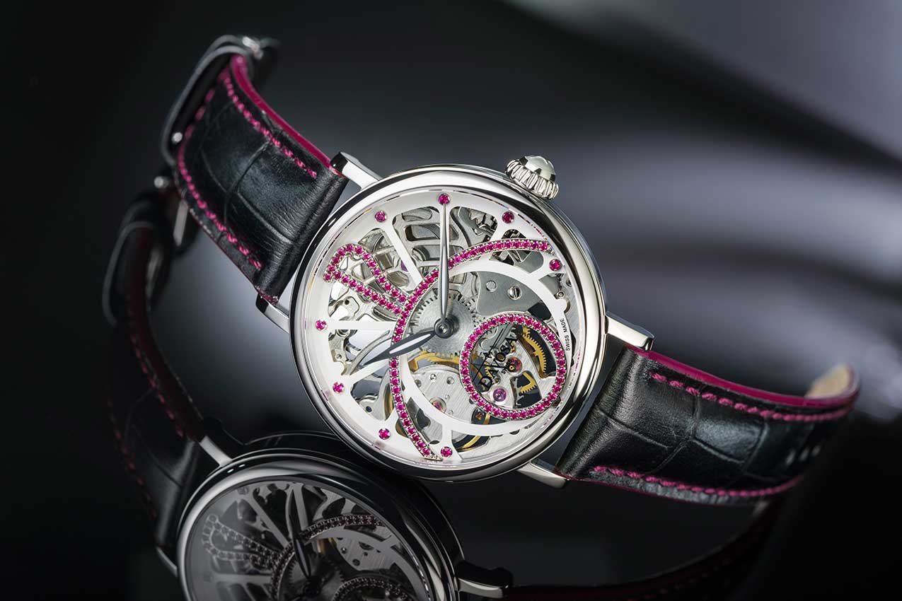 Dámské hodinky Davosa Skeleton. Speciální, tenké pouzdro určené pro ženy, s krásně zdobeným ručně vinutým mechanismem kostry uvnitř. S působivým průměrem 42 milimetrů vyzařuje Davosa Grande Diva sebevědomí. Je to také kvalita, která přitahuje stále větší počet žen, které hledají okouzlující design. Grande Diva jsou módní hodinky, ale klasické linie zajišťují, že nepůsobí drze. Když už mluvíme o klasických hodinkách, které se pyšní pouzdrem z nerezové oceli, zaujmou svou současnou osobitostí v kombinaci s nádechem vintage. Nadčasové kouzlo minulé éry je ladně vyjádřeno v zakřivených 12 drahokamy a třpytivými kameny na lunetě pod ním.