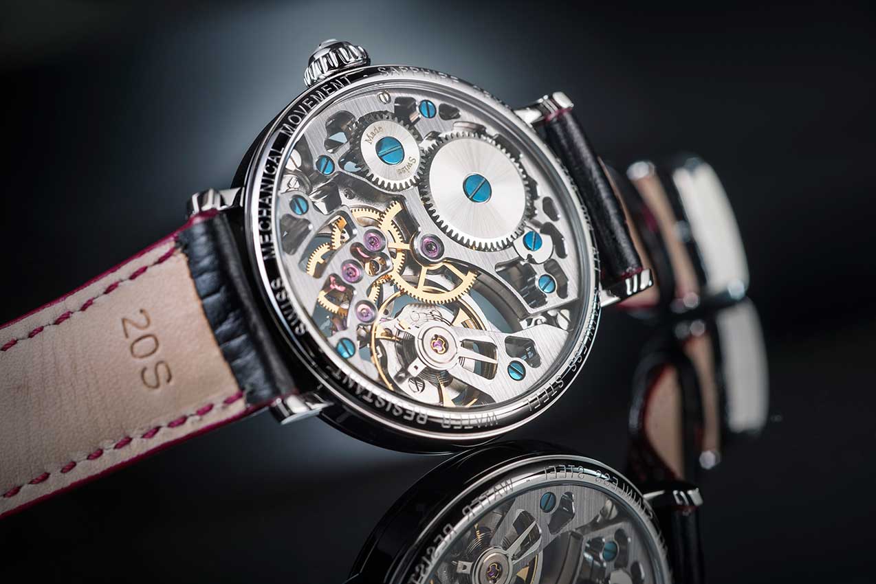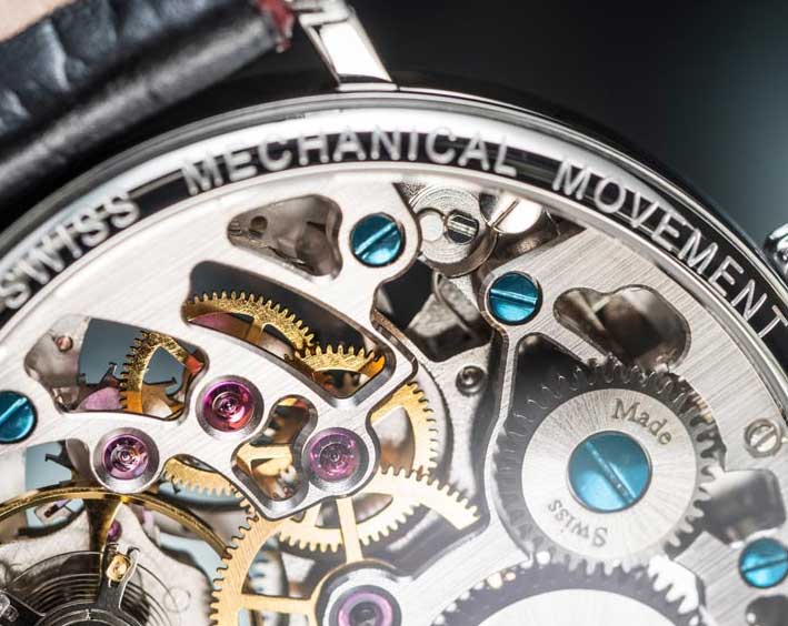 Ruční strojek je rovněž plně mechanický, ale vyžaduje pravidelné natahování pomocí korunky.