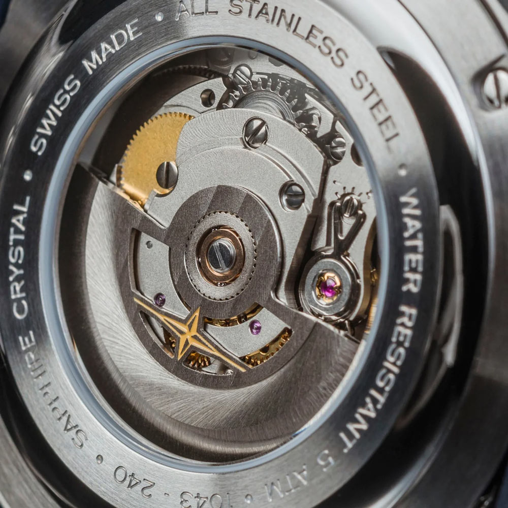 Kónická korunka byla navržena tak, aby se dala snadno ovládat v rukavicích. Jde o důležitý prvek odkazující na tradiční „uniformu“ průkopníků letectví, která zahrnovala mj. kožená čepice, letecké brýle a kožené rukavice. Zadní strana pouzdra je připevněna čtyřmi šrouby. Je vybaven okénkem umožňujícím obdivovat švýcarský automatický strojek DAV3023. Vrcholem je nově vyvinutý skeleton rotor DAVOSA, který opakuje větrnou růžici loga značky a je jemně zdobený Côtes de Genève. Tento komplexní systém je umístěn v ocelovém pouzdře o tloušťce 44 mm. Výrobce spároval časomíru s pevným ocelovým náramkem.