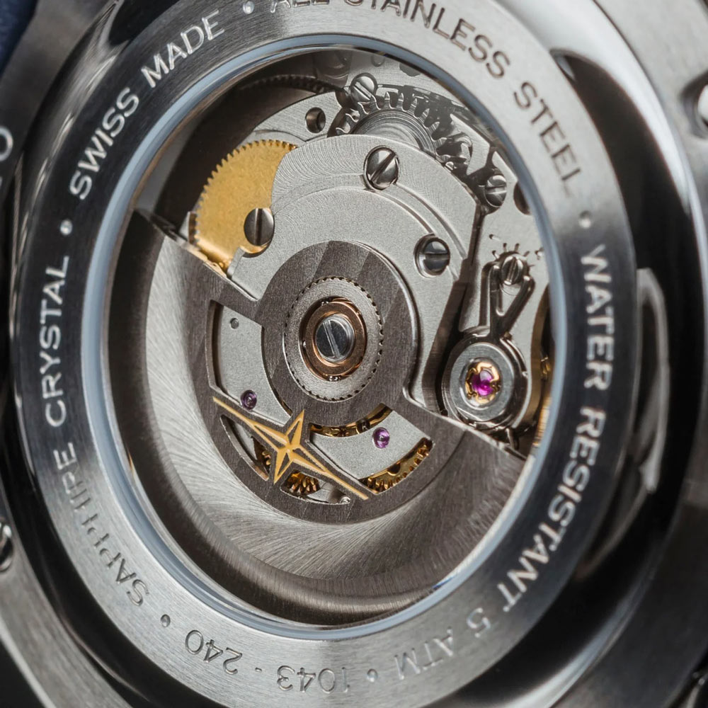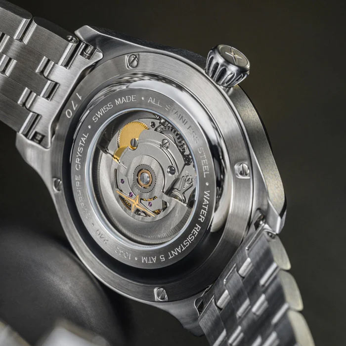 Kónická korunka byla navržena tak, aby se dala snadno ovládat v rukavicích. Jde o důležitý prvek odkazující na tradiční „uniformu“ průkopníků letectví, která zahrnovala mj. kožená čepice, letecké brýle a kožené rukavice. Zadní strana pouzdra je připevněna čtyřmi šrouby. Je vybaven okénkem umožňujícím obdivovat švýcarský automatický strojek DAV3023. Vrcholem je nově vyvinutý skeleton rotor DAVOSA, který opakuje větrnou růžici loga značky a je jemně zdobený Côtes de Genève. Tento komplexní systém je umístěn v ocelovém pouzdře o tloušťce 44 mm. Výrobce spároval časomíru s pevným ocelovým náramkem.
