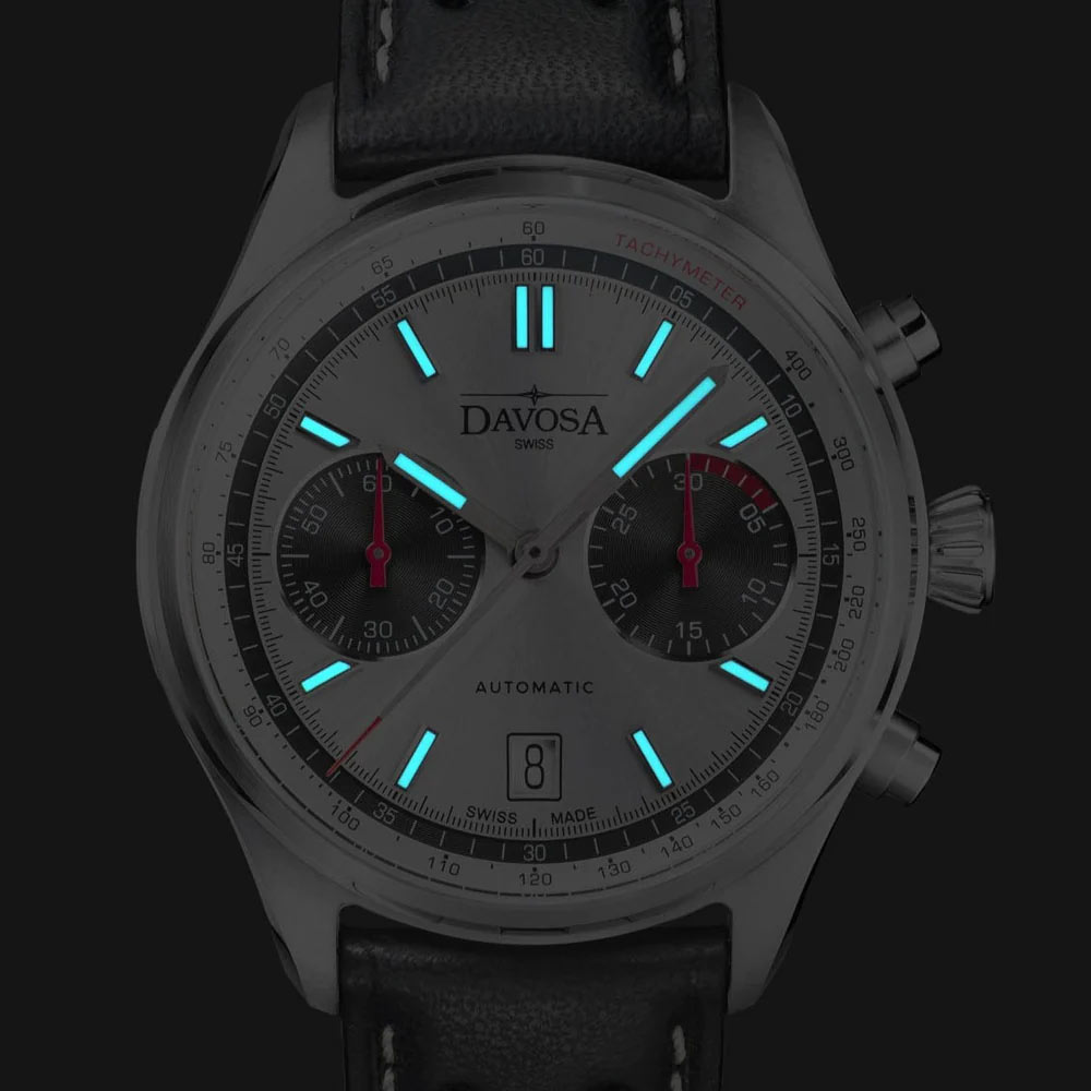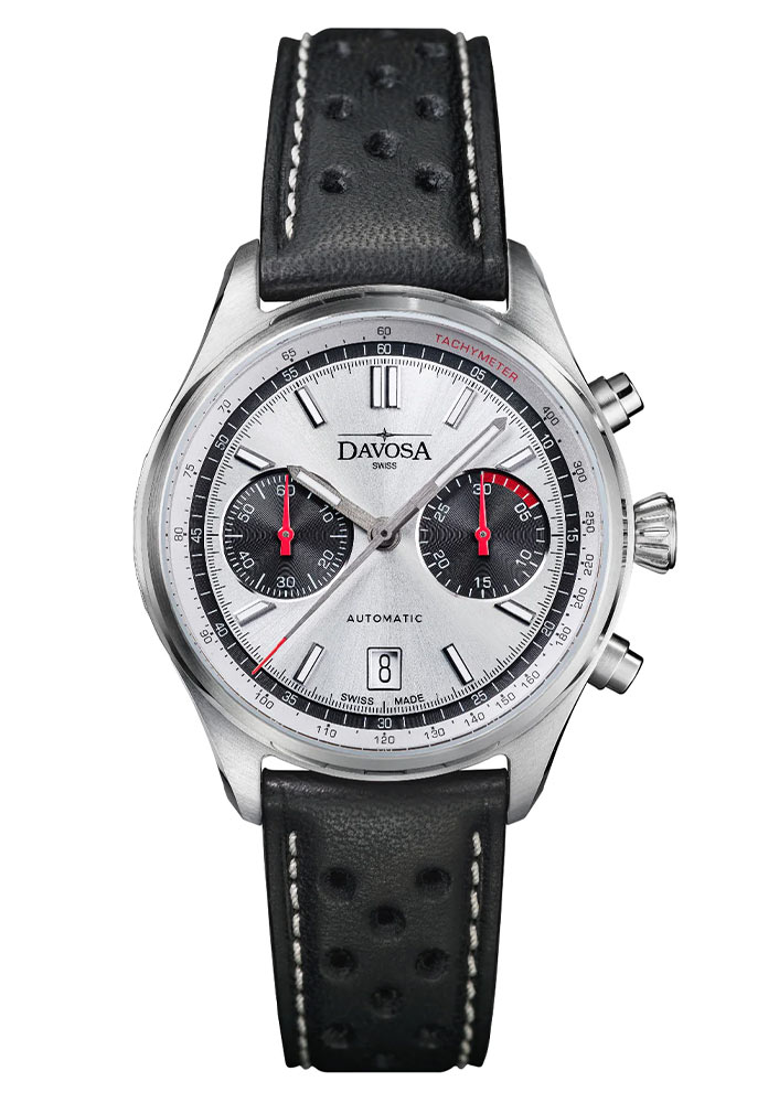 Davosa Pilot Chronograph jsou unikátní hodinky inspirované slovy Jeana-Paula Belmonda, herce a nadšence motoristického sportu: „Závodní jezdec je pilot, který létá příliš nízko.“ Tato limitovaná série se skládá z pouhých 300 kusů a model DAVOSA Newton Pilot Rally Chronograph 161.536.15 vzdává hold hrdinům starých silnic. Tito odvážlivci svou odvahou, dovednostmi a špetkou šílenství zdolávali nebezpečné tratě. Konstrukce automatického chronografu Davos dokonale kombinuje klasickou závodní DNA s funkčním měřením rychlosti a času. Přesná švýcarská mechanika zajišťuje absolutní spolehlivost.