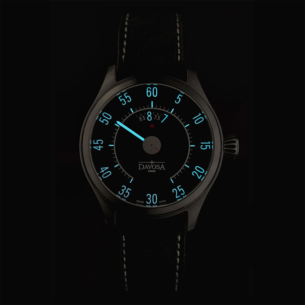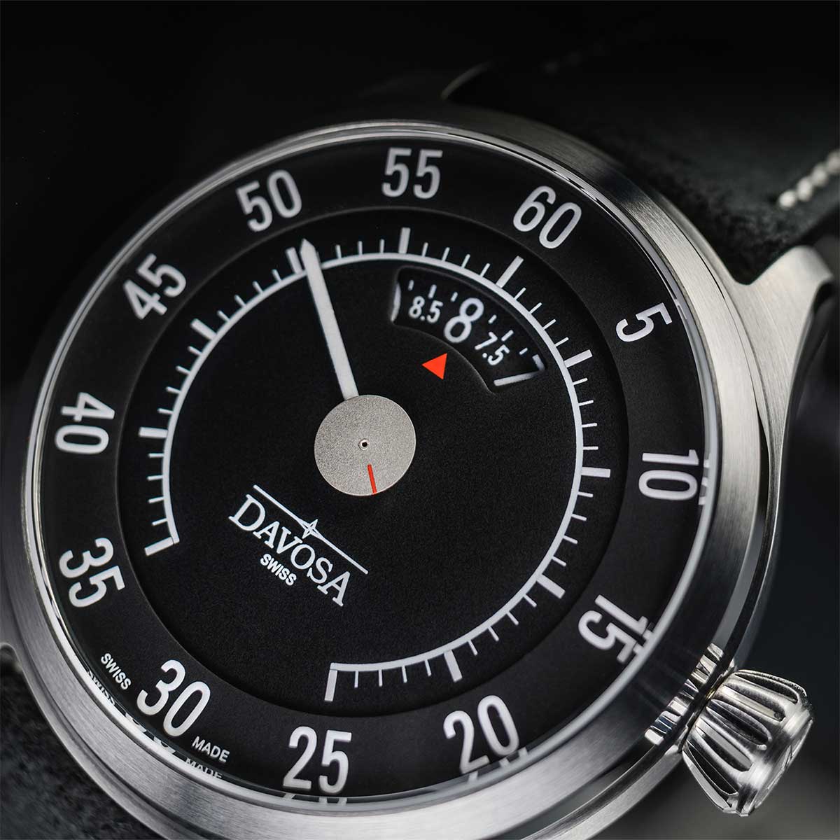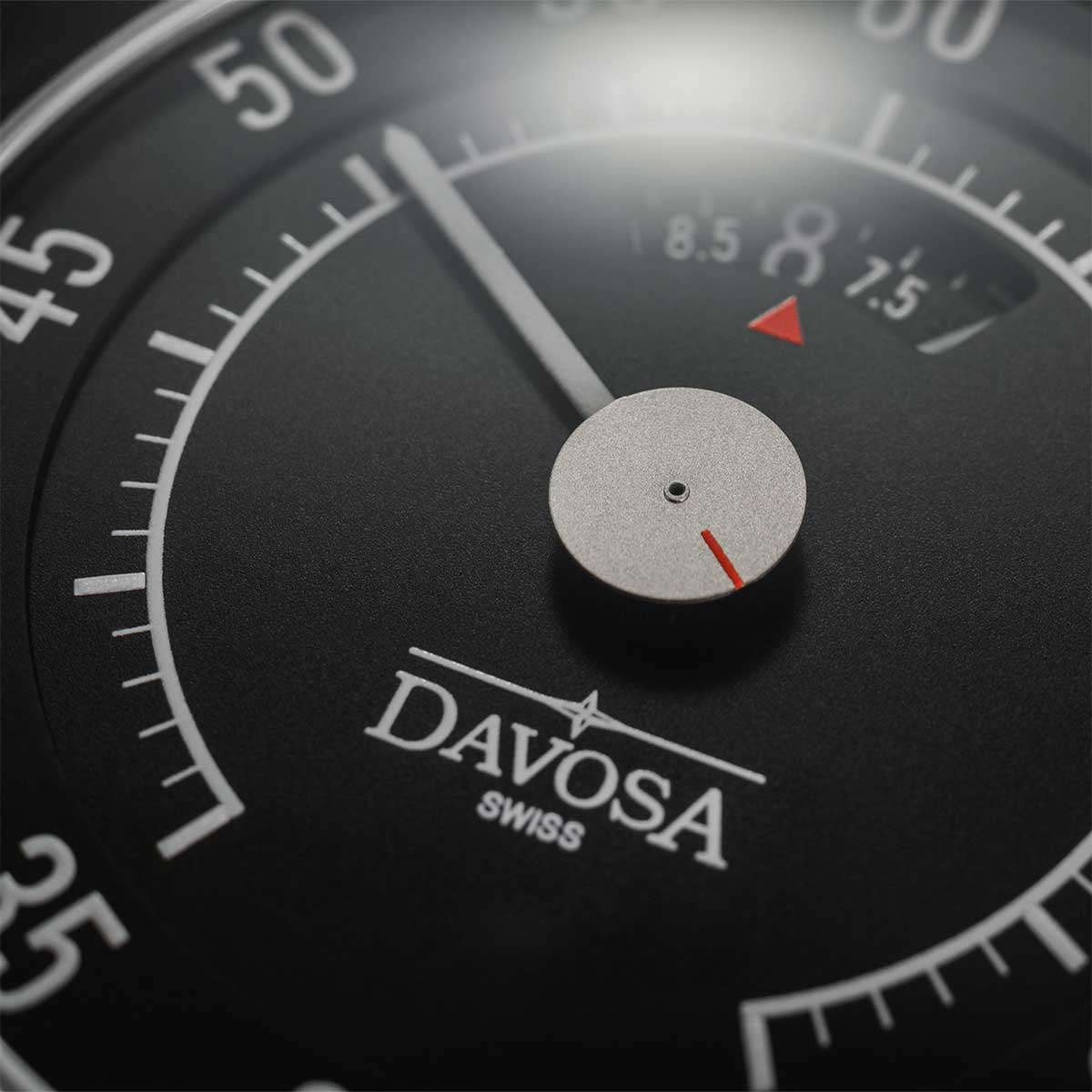 V 50. a 60. letech 20. století, v době německého hospodářského zázraku a Woodstocku, byl vůz ztělesněním osobní svobody – mocným symbolem nových začátků, dobrodružství a finančního blahobytu. Davosa Newton Speedometer 161.587.55 je věnován této velké době. Pryč jsou klasické ručičky a datumovka, které byste očekávali. Místo toho švýcarský hodinář vytvořil ciferník, který mohl pocházet z kokpitu legendárního sportovního vozu. Vyznačuje se jemnou elegancí, zaujme svou výrazností a nadčasovostí. Stejně jako v automobilovém průmyslu v 50. a 60. letech 20. století vnesli designéři Davosa do designu číselníku rychloměru Newton zvláštní kreativitu. Hodinová ručička byla nahrazena otočným číselníkem, který ukazuje čas v okénku na 12. Přesný čas se odečítá červenou elegantní šipkou. Centrálně umístěná minutová ručka odkazuje na rychloměry v autech, je velká a čitelná a minutová stupnice v pěti krocích je vyjádřena klasickým jednoduchým písmem. Uprostřed se druhý disk diskrétně otáčí v podobě matně stříbrného disku s akcentem červené linky. Toto vynikající složení je dostupné v neutrální černé s bílou Super-LumiNova BGW09 . Při slabém osvětlení vám svítící materiál umožňuje číst hodiny a minuty v bledě modré barvě. Na čitelnost jistě nějakou dobu trvá, než si na ni zvyknete, ale jakmile pochopíte základní princip, Davosa Newton Speedometer jsou skutečně fascinující hodinky, které jistě zaujmou.