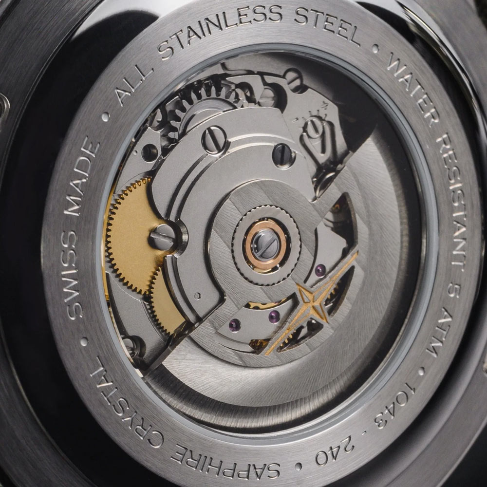 Ruční strojek je rovněž plně mechanický, ale vyžaduje pravidelné natahování pomocí korunky.