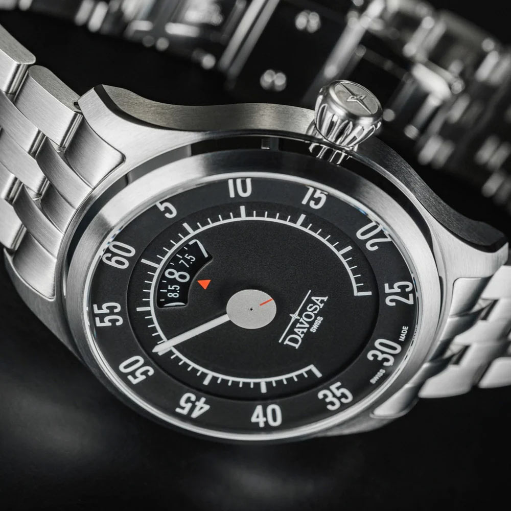Pánské hodinky Davosa Newton Speedometer 161.587.50 jsou poctou 50. a 60. létům minulého století, bylo to období mezi ekonomickým zázrakem a Woodstockem, kdy byl automobil symbolem individuální svobody – plný průlomů, dobrodružství a blahobytu. Newton Speedometer Automatic je věnován této slavné době. Člověk bezvýsledně hledá klasické stopy a datum