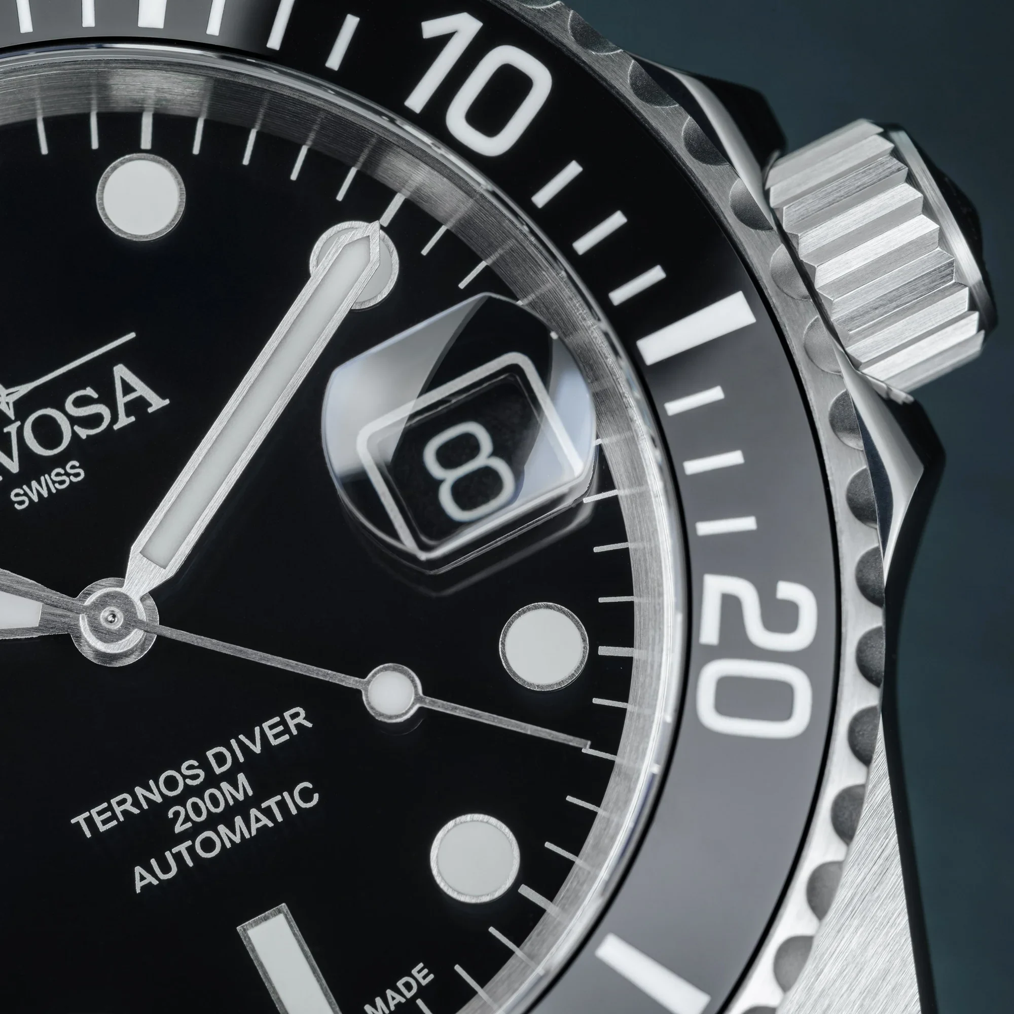 Hodinky jsou vybaveny otočnou jednosměrnou lunetou s keramickou vložkou o tvrdosti 1250 HV dle Vickersovy stupnice. Tento materiál je odolný proti poškrábání, UV záření i korozi a jeho lesk dodává celku elegantní vzhled. Pod safírovým sklíčkem s antireflexní vrstvou se nachází přehledný ciferník s výraznými indexy a ručkami potaženými luminiscenční hmotou Super-LumiNova® BGW9, která září modrým světlem a zajišťuje výbornou čitelnost i v hlubinách. Na pozici třetí hodiny je umístěno datumové okénko se zvětšovací čočkou.