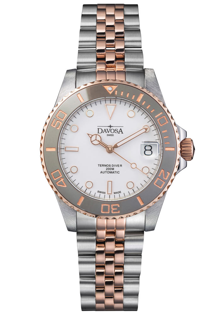 Davosa Ternos Medium Automatic 166.196.02 je ohromující edice profesionálních automatických hodinek pro ženy. Vynikající zpracování, originální, promyšlený design viditelný do nejmenšího detailu. Přesvědčí nejen profesionální sportovce nebo milovníky aktivního trávení volného času, ale i ty, pro které by hodinky měly být reprezentativní i odolné.