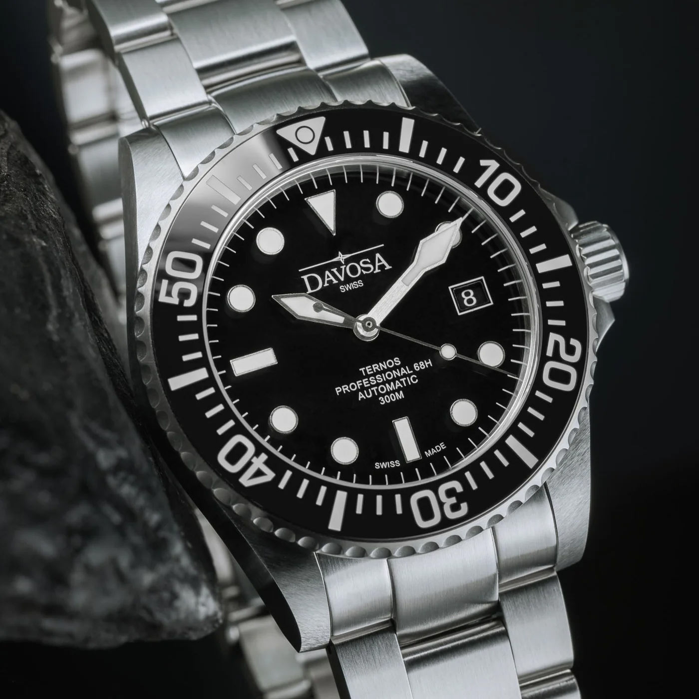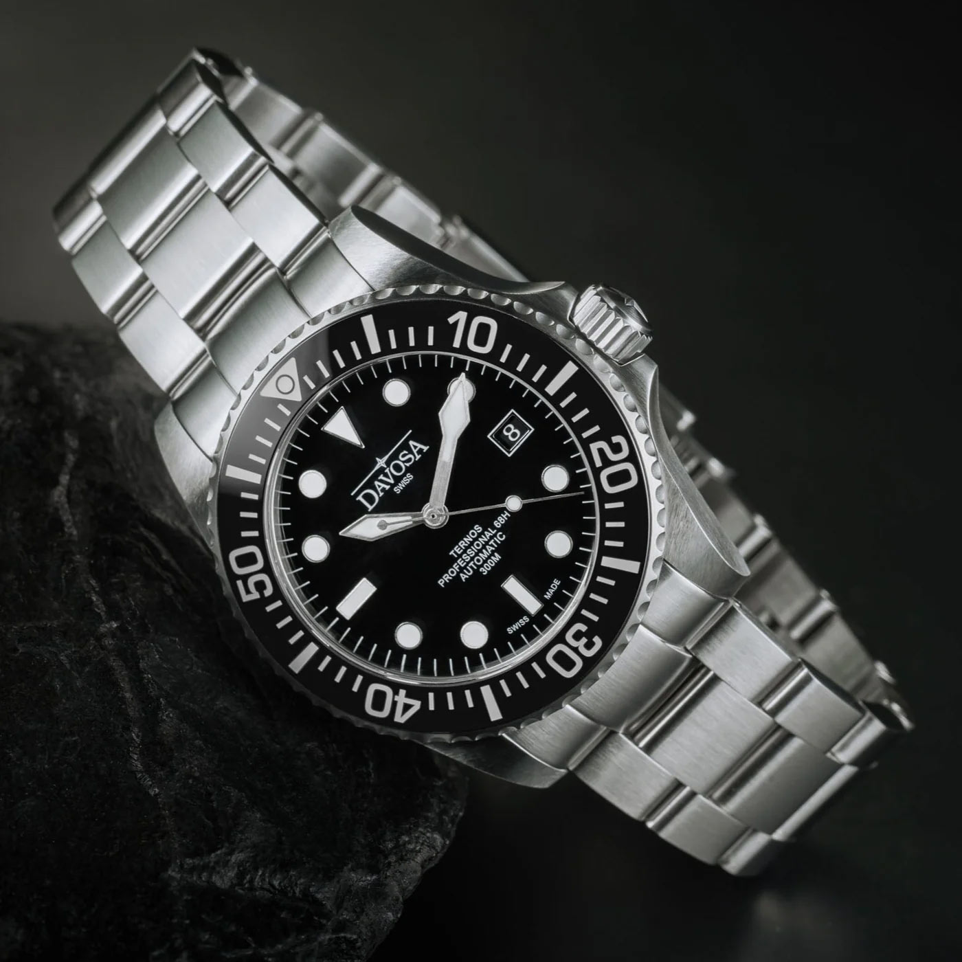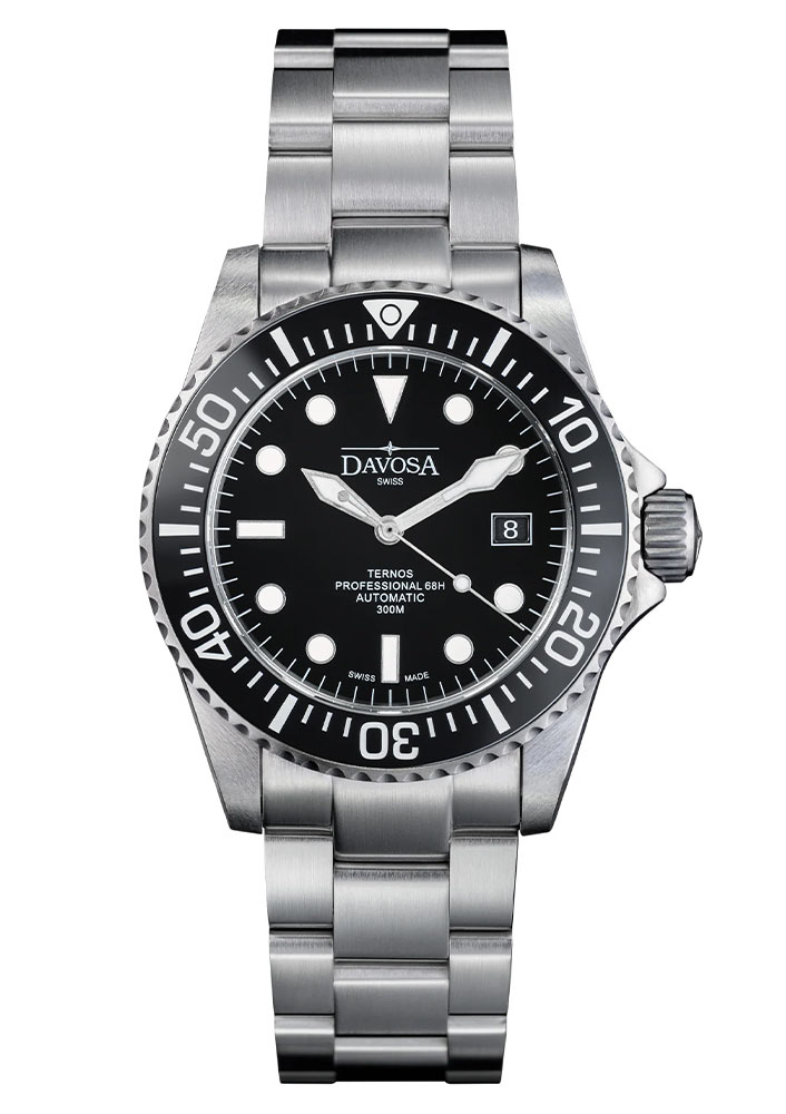 Profesionální potápěči se musí na své vybavení 100% spolehnout. Používání vybavení a příslušenství používaného pod vodou musí zaručovat pohodlí a snadné použití. Pánské hodinky Davosa Ternos Professional 68H 161.538.50 jsou unikátní časomíra, která má za úkol podporovat svého majitele jak hluboko pod vodou, tak na hladině. Absolutní spolehlivost, vynikající zpracování a vysoká funkčnost charakterizují kolekci Ternos Professional již léta. Prezentované hodinky Davosa jsou toho dalším důkazem a hrdým zástupcem kolekce.