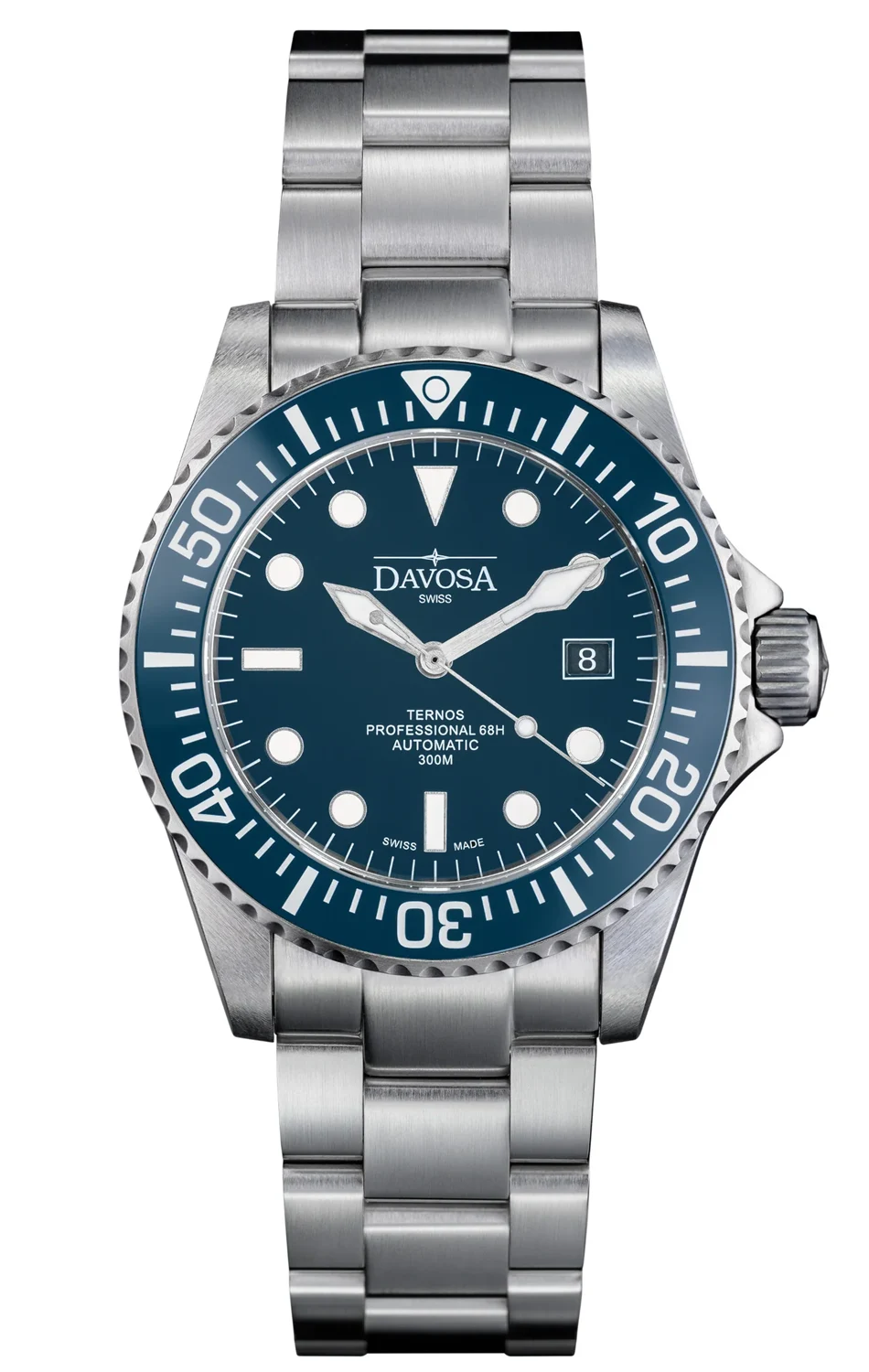 Davosa Ternos Professional 68H Automatic jsou hodinky, které spojují profesionální potápěčská řešení s moderním designem. Modrý ciferník a keramická luneta jim dodávají sportovní charakter a vysoká funkčnost z nich činí spolehlivého společníka jak v hlubinách, tak i v městském prostředí.