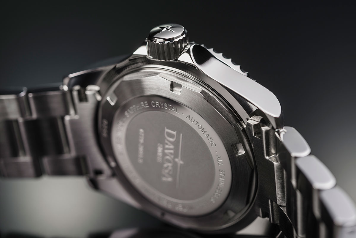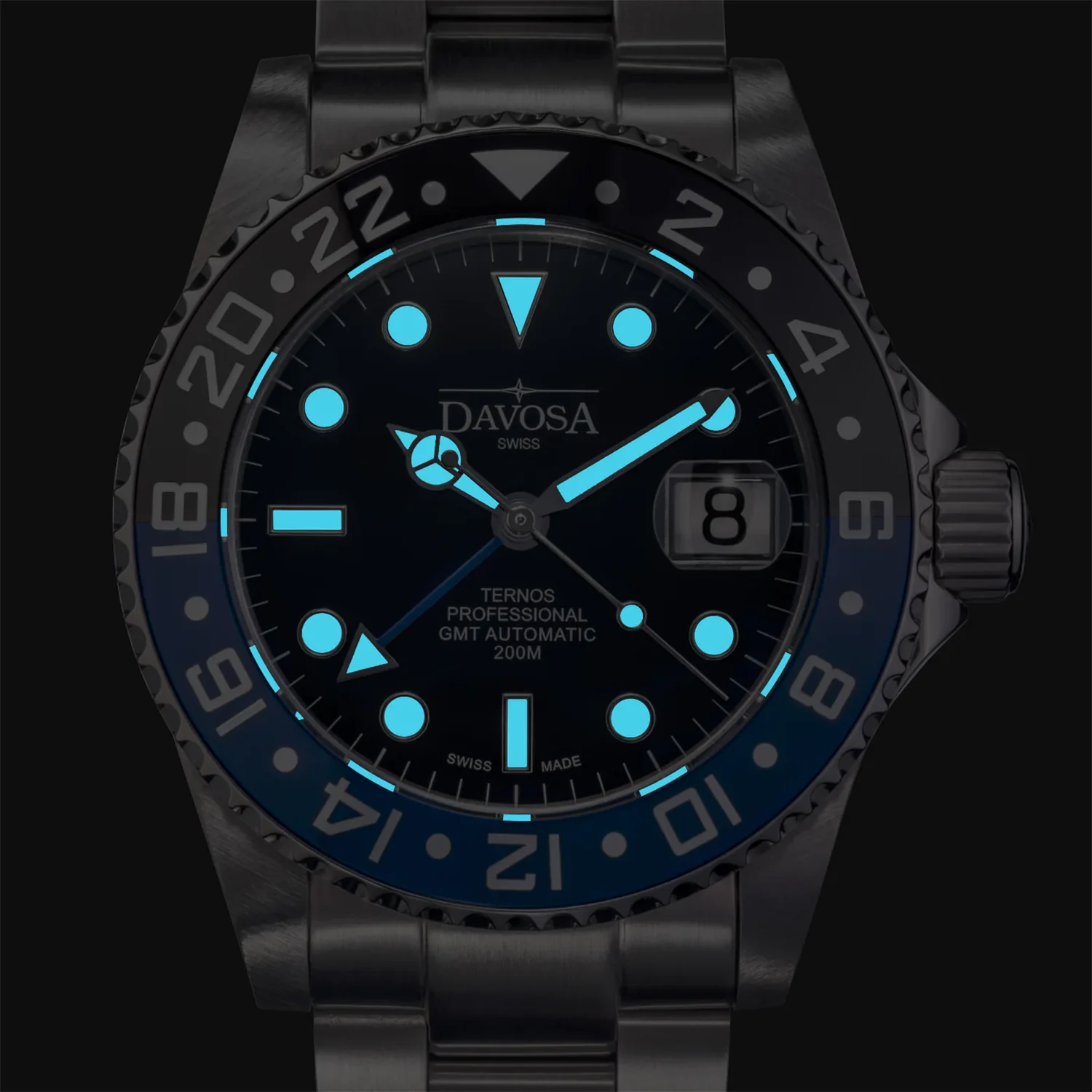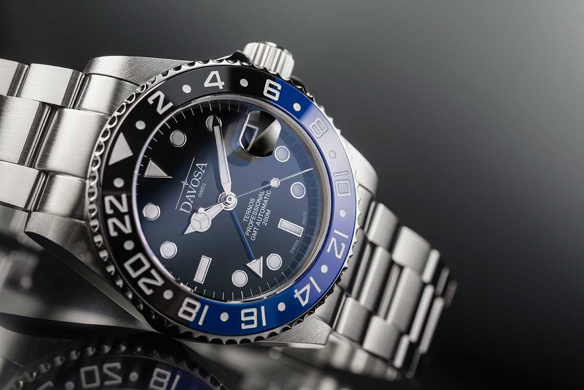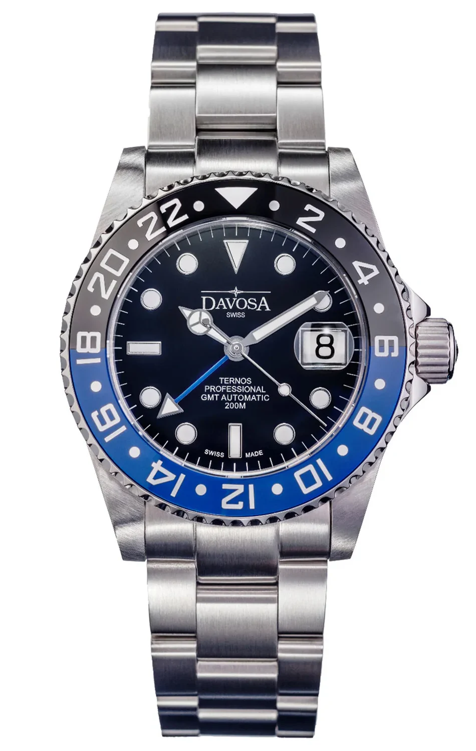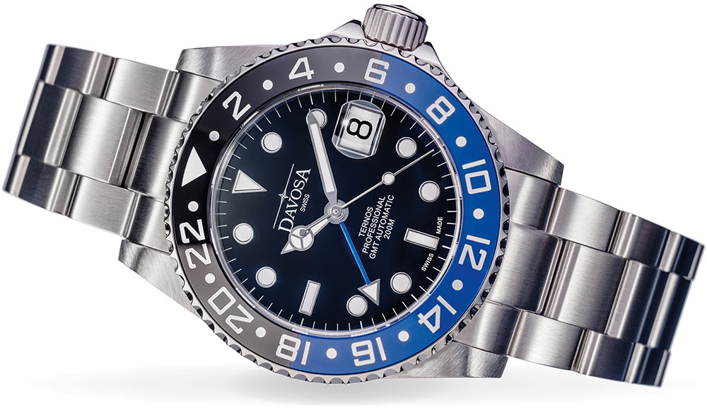Davosa Ternos Professional GMT Automatic 161.571.45.W jsou profesionální potápěčské hodinky Swiss Made, které vynikají sportovní funkčností i elegancí zároveň. Navrženy pro cestovatele a nadšence do objevování podmořských hlubin, spojují odolnost vůči extrémním podmínkám s praktickou komplikací GMT, umožňující kontrolu času ve dvou pásmech současně.