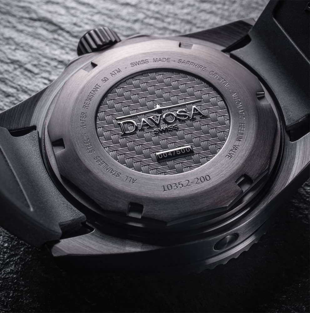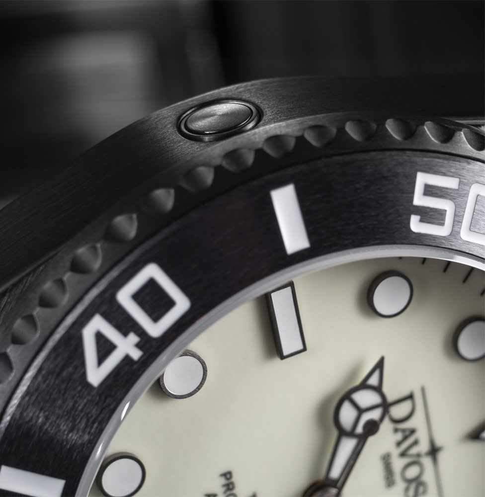 Pod tvrdým a vysoce odolným proti poškrábání antireflexním safírovým sklíčkem se ukrývá unikátní diverský ciferník . Ciferník má přehledné ručičky a indexy. Celý ciferník je díky složení svítících pigmentů megaluma, která je díky Super-LumiNova podsvícená zeleně - ručky svítí modře, což usnadňuje odečítání času i v naprosté tmě. Našlo se i místo pro datumové okénko s aktuálním dnem v měsíci na pozici 3 hodin. Technologie a design ciferníku umožňují odečíst aktuální čas během mrknutí oka. Pod ciferníkem je tlukoucí srdce - přesný a spolehlivý zápěstně řízený automatický kalibr DAV.