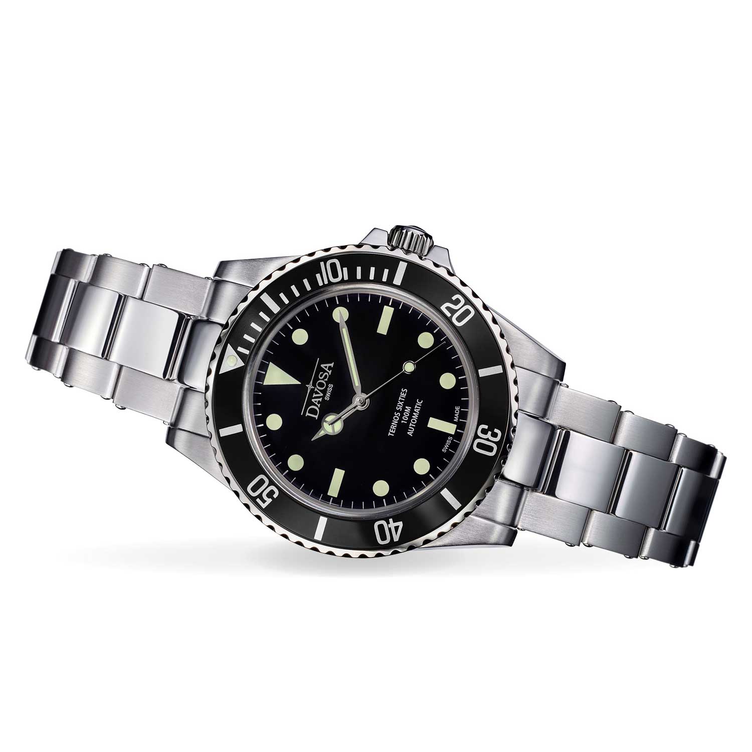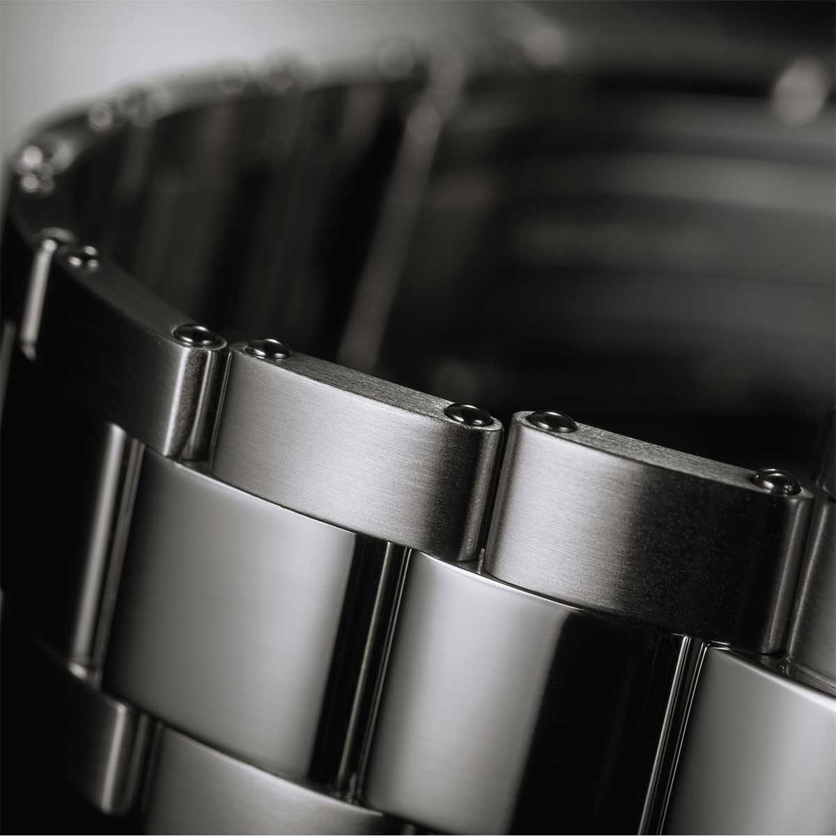 V dnešních diverských hodinkách i mimo ně se ocelové řemínky obvykle skládají z jednotlivě šroubovaných článků se šrouby, které jsou zapuštěny do každého článku, takže jsou téměř neviditelné. V minulém století se však hodinky často vyznačovaly viditelnými nýty, které byly snadno rozpoznatelné podle jejich vyvýšených profilů podél vnějšího okraje článků. DAVOSA dala Ternos Sixties kovový pásek, který oživuje tento klasický vzhled. V souladu s dobou jsou však nýty spodních ramen přesto odšroubovány, aby bylo možné snadno přizpůsobit zápěstí.