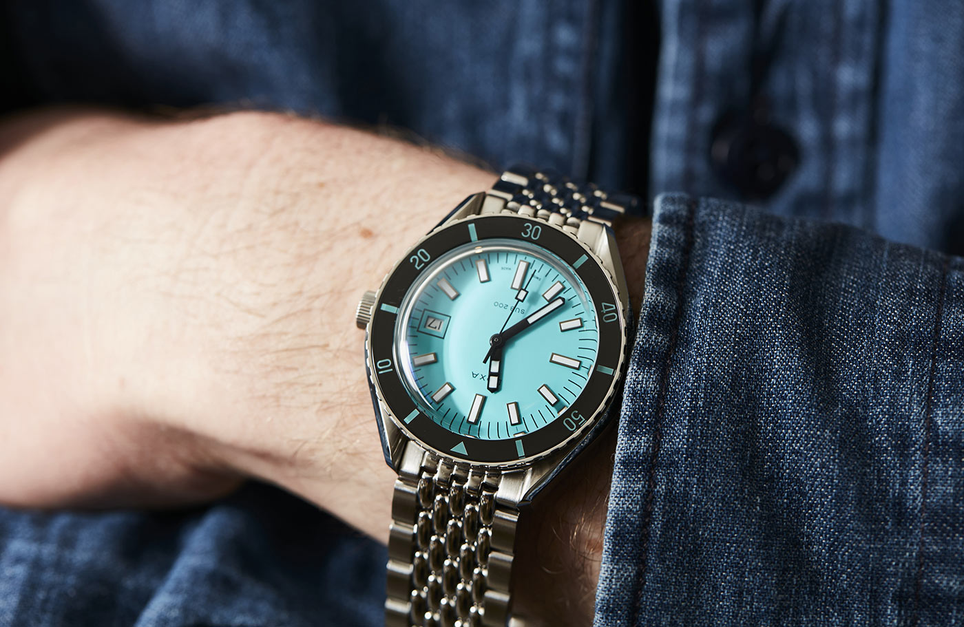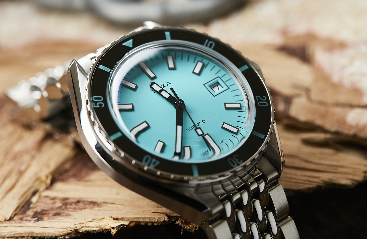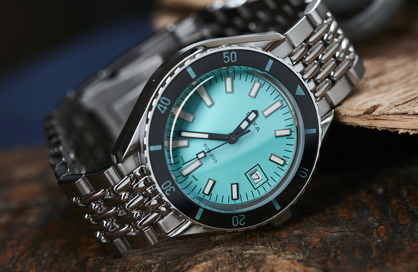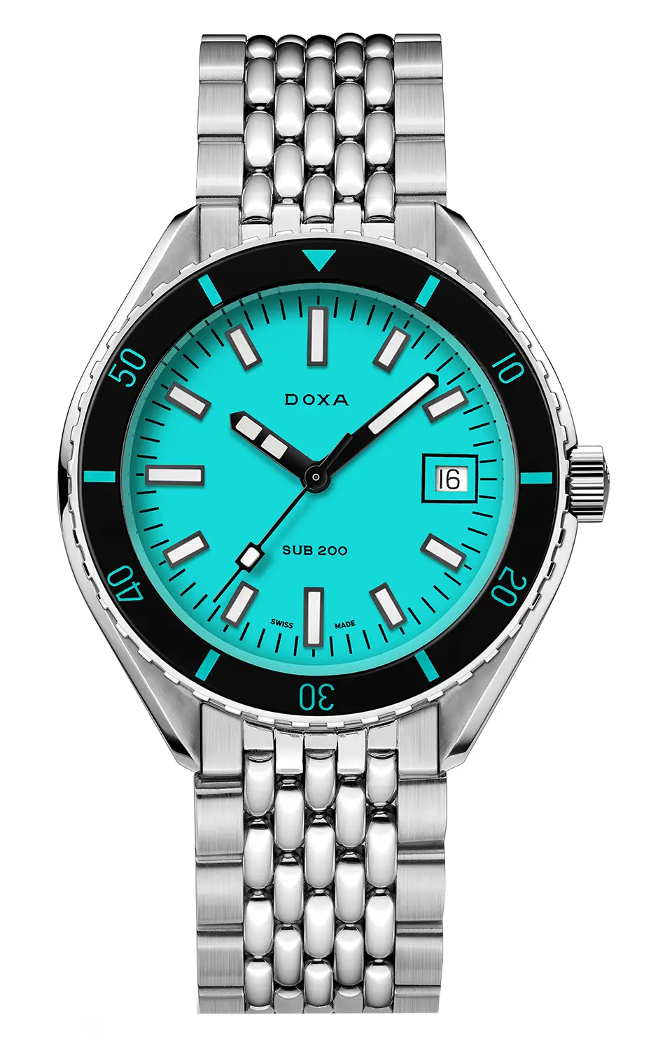 Výše uvedené pánské diverské hodinky Doxa SUB 200 Aquamarine s referenčním číslem 799.10.241.10 mají jednosměrně otočnou lunetu se stupnicí 60 minut, funkční akvamarínový ciferník a dobře čitelné indexy a ručičky. Všechny datové prvky důležité pro potápění, včetně lunety, jsou vyplněny luminiscenční vrstvou Super-LumiNova®.