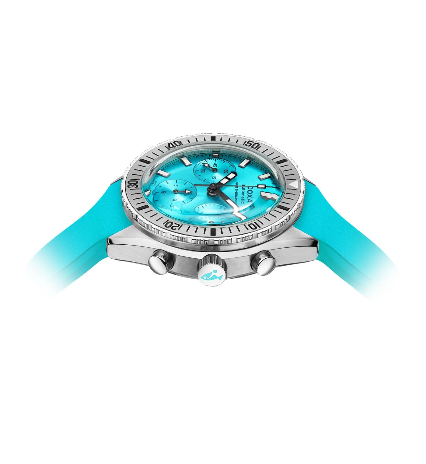 Ciferník profesionálních diverských hodinek Doxa SUB 200 C-Graph II oslní novým svítivým povrchem, který vyjadřuje vintage ducha kolekce. Světelný efekt sluneční erupce dodává disku jemnou, zvláštní eleganci. Ochrannou funkci nad ním plní safírové sklíčko prakticky odolné proti poškrábání s antireflexní vrstvou, která umožňuje zřetelně odečítat čas z jakéhokoli úhlu. Řemínek z FKM pryže s exkluzivním symbolem Doxa Fish na přezce je voděodolný a snadno se udržuje. V kombinaci s nižší hmotností jsou tyto diverské hodinky Doxa SUB ideální pro divere, kteří hledají spolehlivý a vysoce výkonný náMachine.