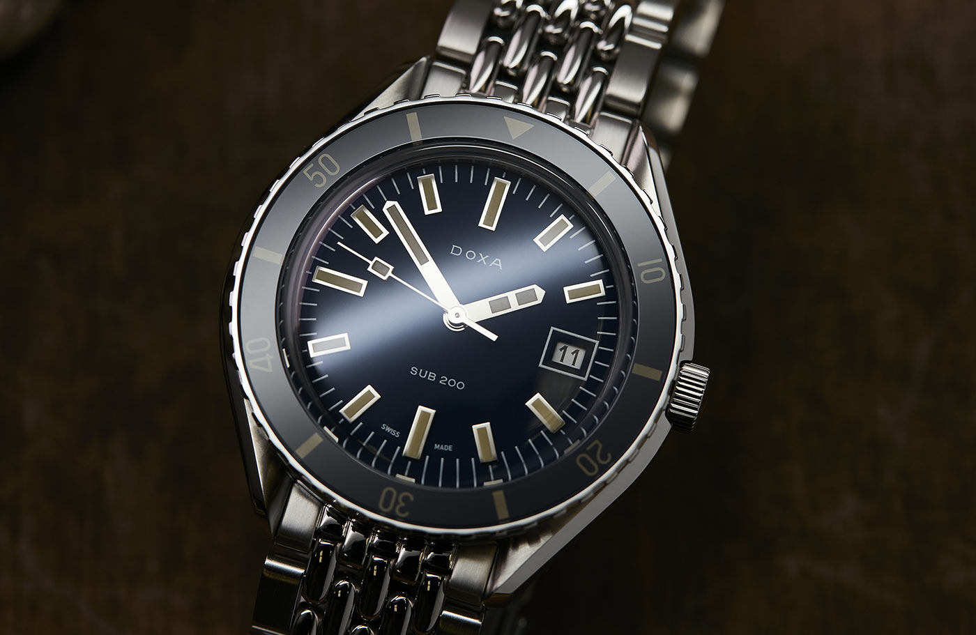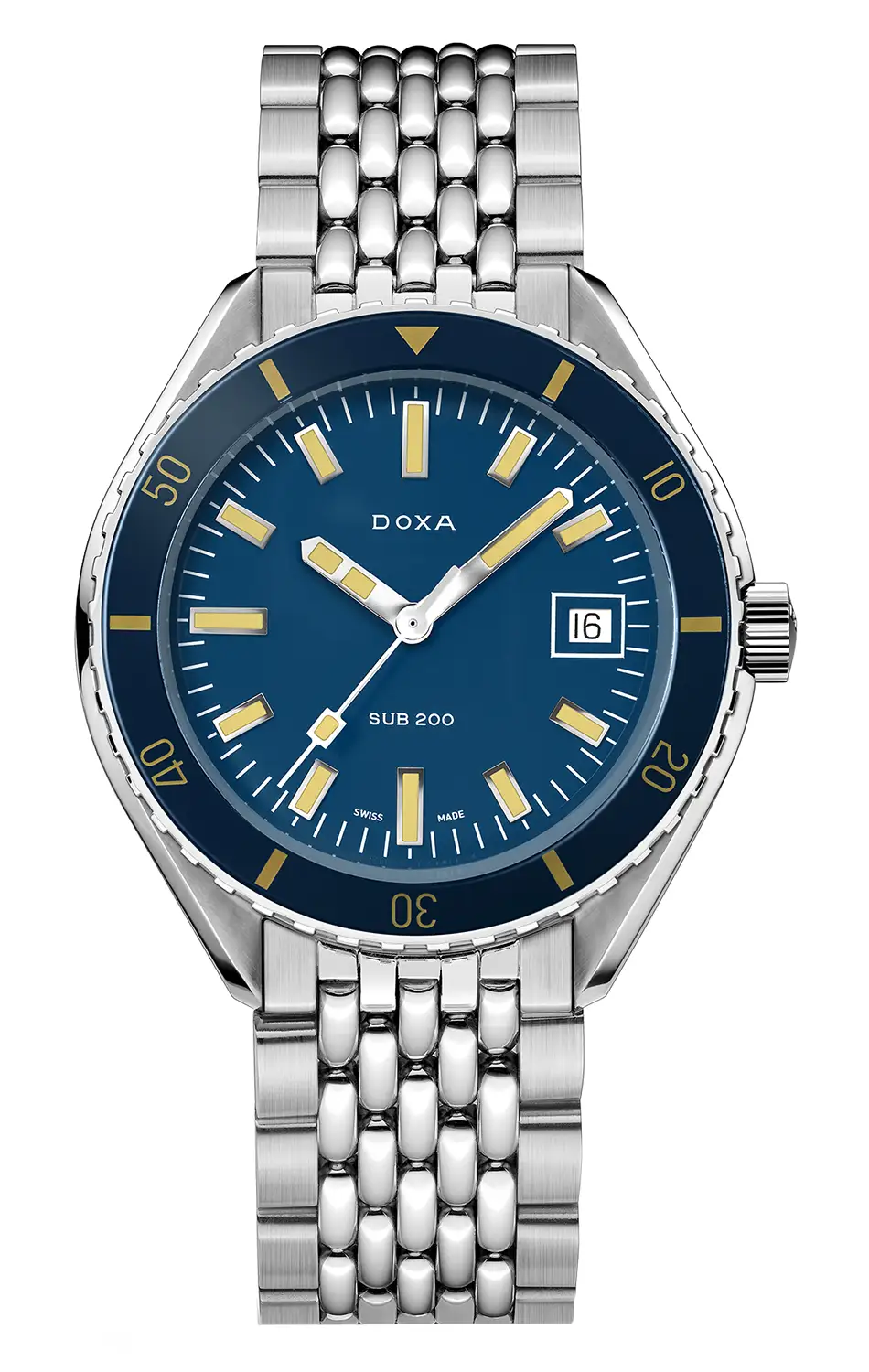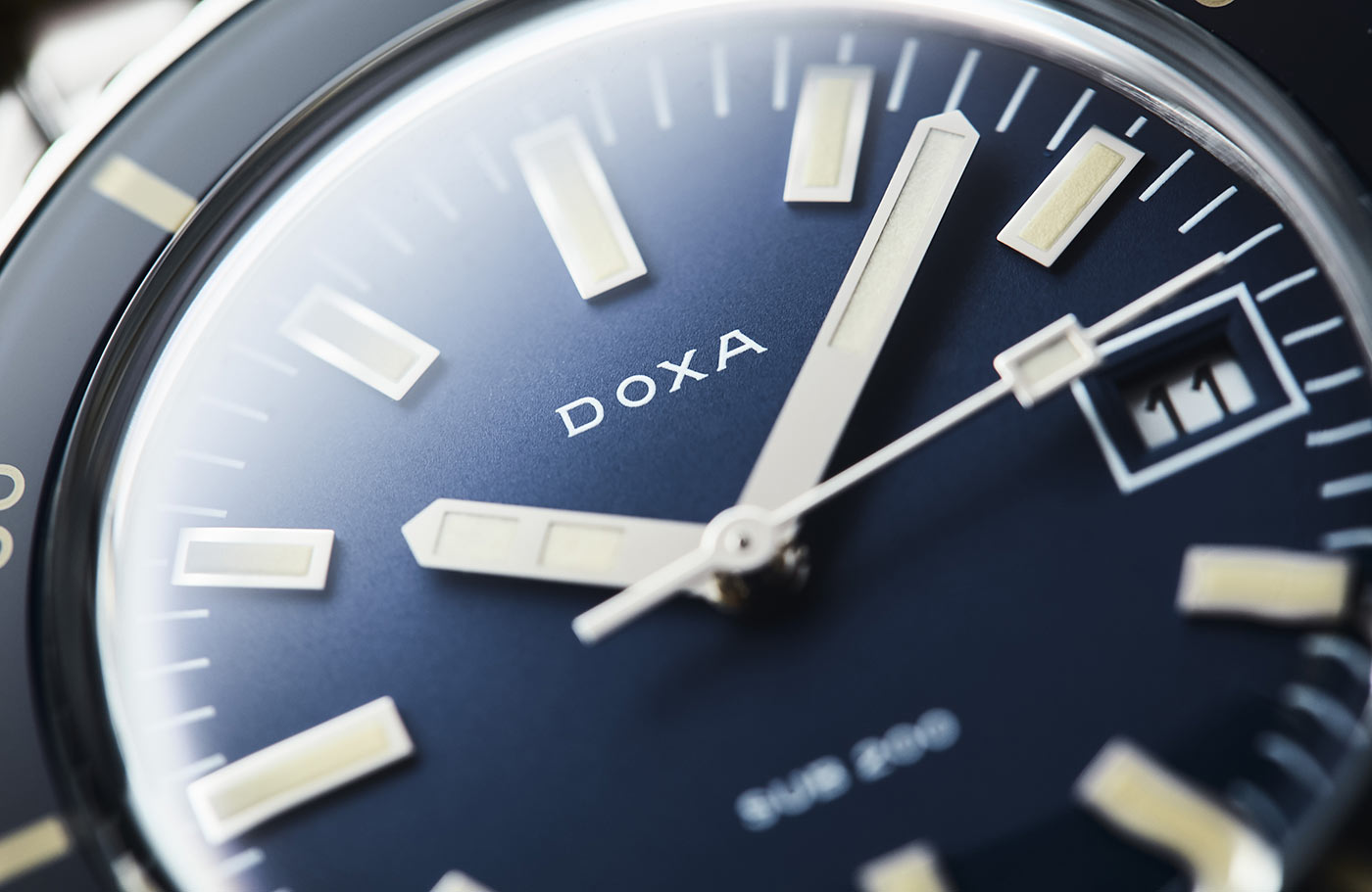 Řada DOXA SUB 200, představená na Baselworld 2019, nabízí 42mm profesionální tříručičkové automatické diverské hodinky s vodotěsností 200 metrů (20 ATM). Každý je vyroben z nerezové oceli 316L a má safírové sklo odolné proti poškrábání obohacené o antireflexní vrstvu a představující charakteristické zakřivení kopule dříve vyrobené z plexiskla.
