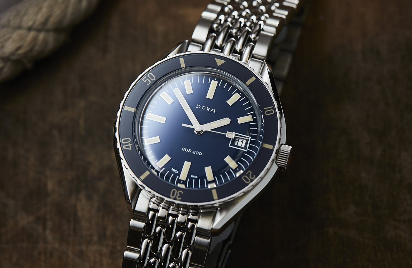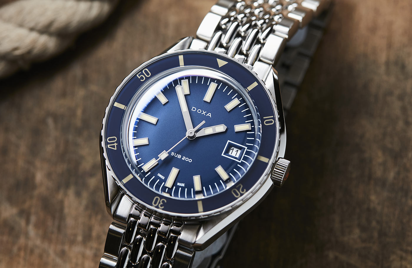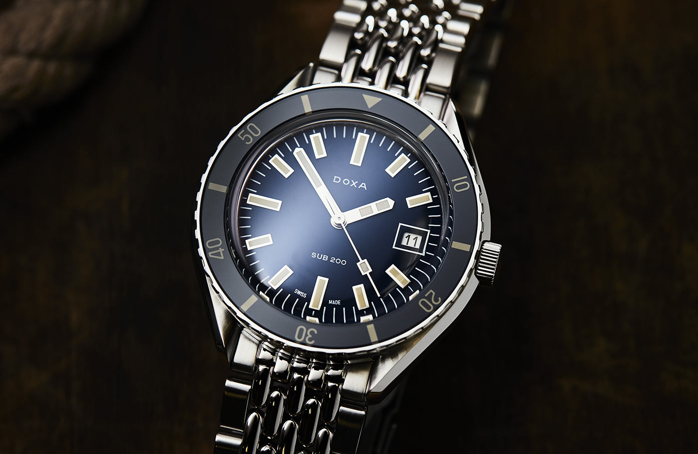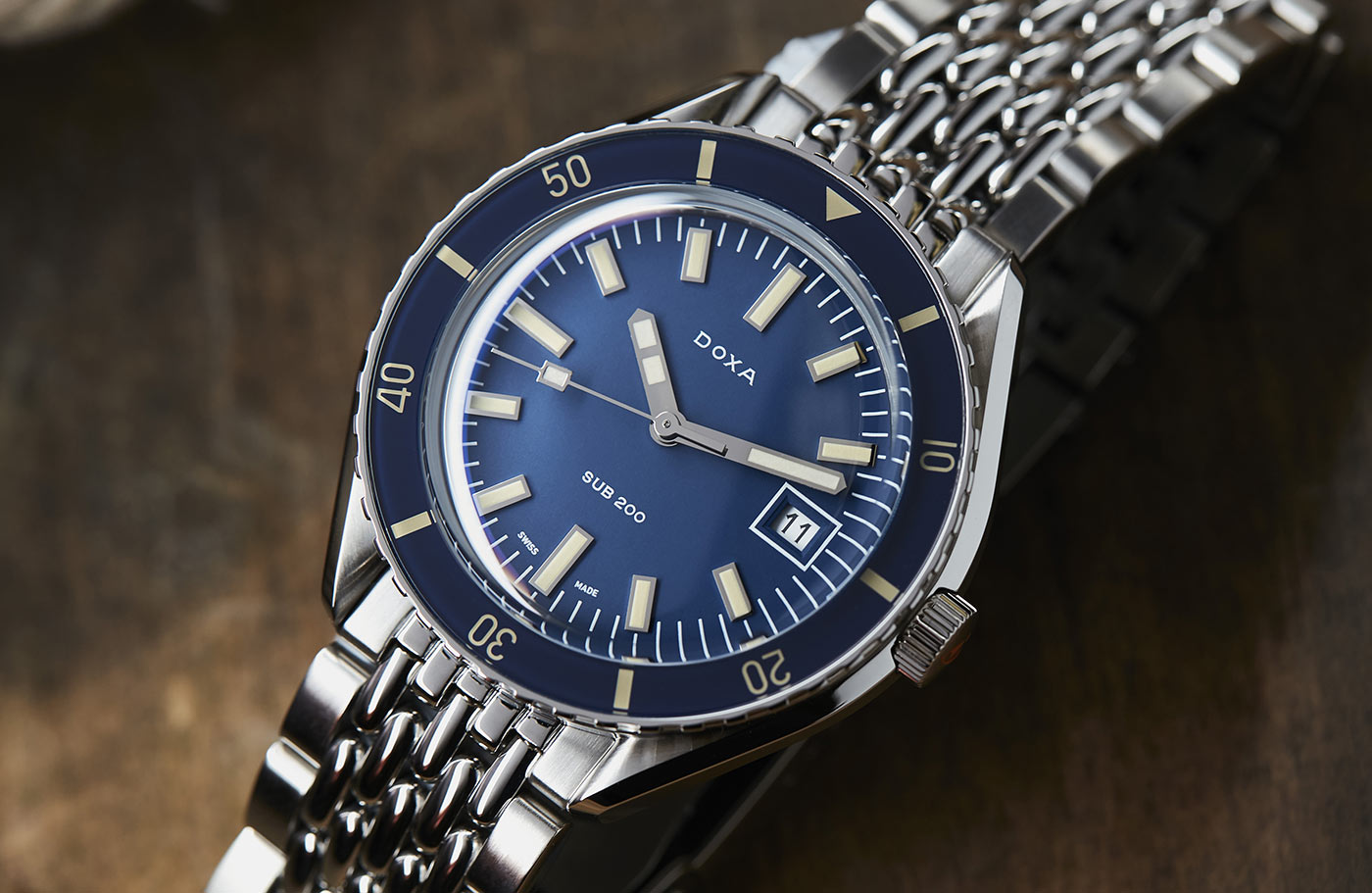 Řada DOXA SUB 200, představená na Baselworld 2019, nabízí 42mm profesionální tříručičkové automatické diverské hodinky s vodotěsností 200 metrů (20 ATM). Každý je vyroben z nerezové oceli 316L a má safírové sklo odolné proti poškrábání obohacené o antireflexní vrstvu a představující charakteristické zakřivení kopule dříve vyrobené z plexiskla.