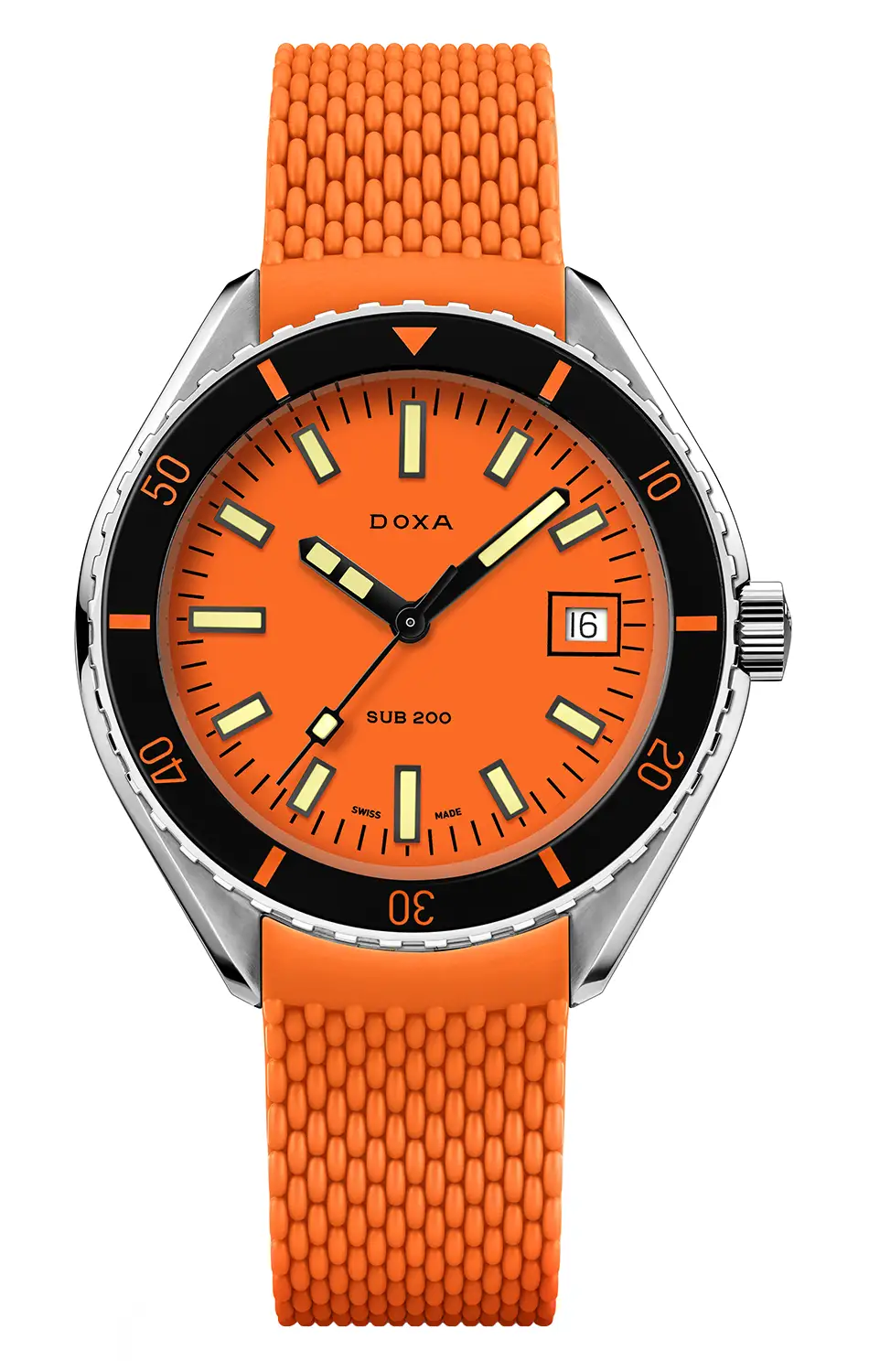 Řada DOXA SUB 200, představená na Baselworld 2019, nabízí 42mm profesionální tříručičkové automatické diverské hodinky s vodotěsností 200 metrů (20 ATM). Každý je vyroben z nerezové oceli 316L a má safírové sklo odolné proti poškrábání obohacené o antireflexní vrstvu a představující charakteristické zakřivení kopule dříve vyrobené z plexiskla.