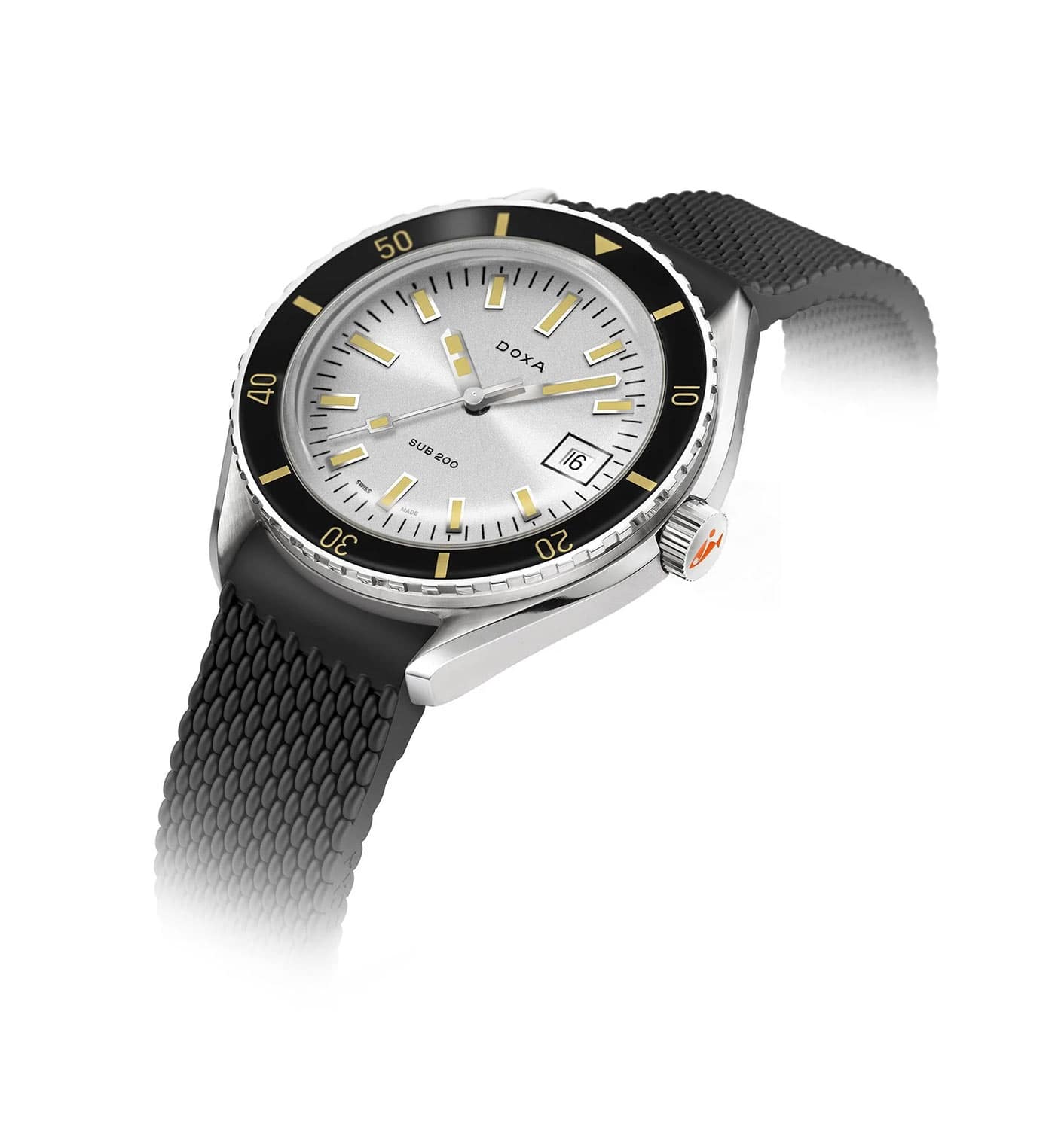 Řada DOXA SUB 200, představená na Baselworldu 2019, nabízí 42mm profesionální tříručičkové automatické diverské hodinky s vodotěsností do 200 metrů (20 ATM). Každý je vyroben z oceli 316L a má safírové sklo odolné proti poškrábání, které je antireflexní a vykazuje charakteristické zakřivení kopule z plexiskla.