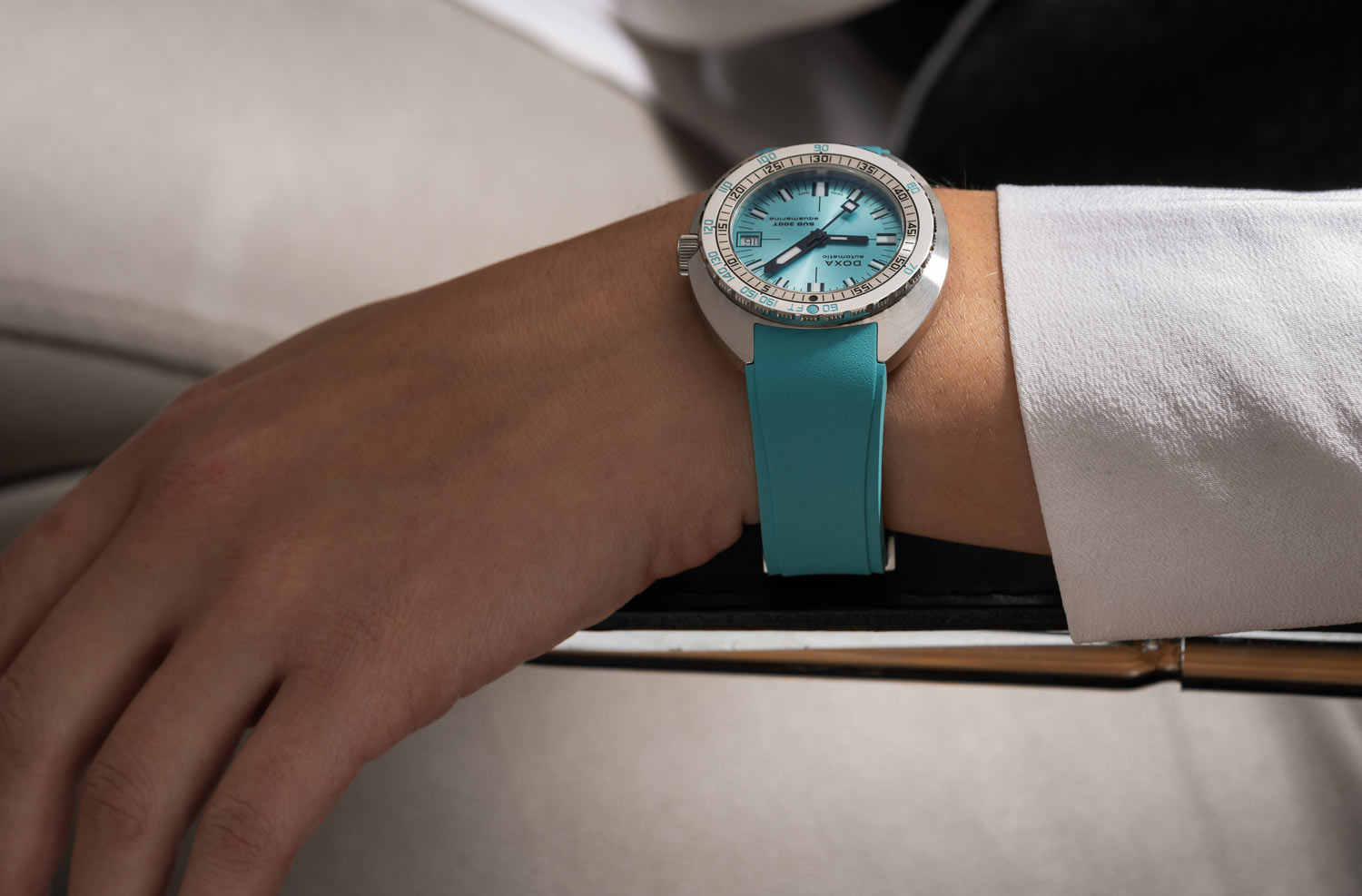 Švýcarský výrobce hodinek Doxa s hrdostí představuje další přírůstek do své renomované kolekce diverských hodinek SUB. Diverské hodinky Doxa SUB 200T Aquamarine 804.10.241S.25 byly vytvořeny pro nadšence do objevování podmořského světa a nabízejí jim bezkonkurenční čitelnost a spolehlivost. Jedná se o profesionální hodinky, které budou perfektně fungovat v rukou jak zkušeným diverům, tak i nadšencům do vodních dobrodružství. Tento model se vyznačuje nejen výjimečnou čitelností, ale také snadným ovládáním a mimořádnou odolností, což z něj činí nepostradatelný nástroj pro milovníky hlubin. Hodinky Doxa na gumovém řemínku se mohou pochlubit všemi technickými inovacemi, díky kterým jsou SUB známé a oceňované od jejich debutu v roce 1967.