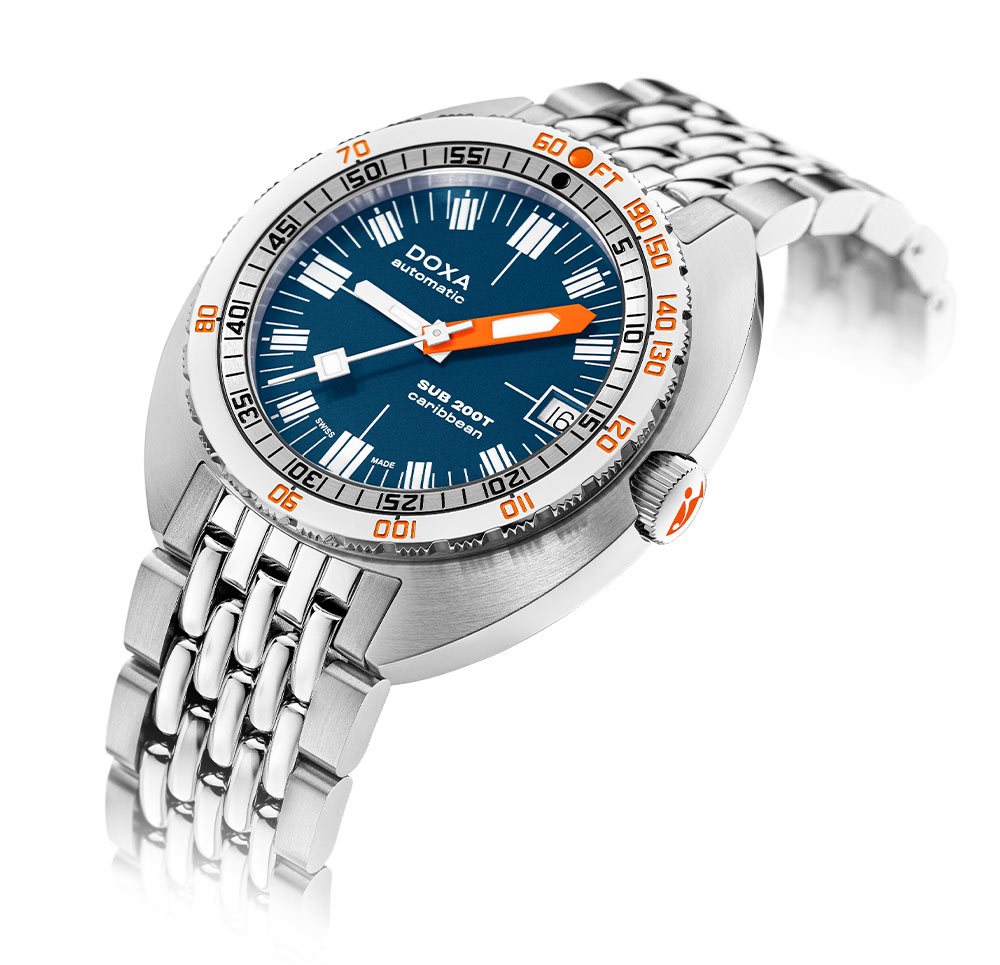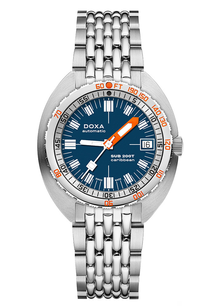 Švýcarská hodinářská značka Doxa s potěšením představuje další díl své kolekce diverských hodinek SUB. Jedná se o diverské hodinky s extrémně čitelným ciferníkem jako stvořené pro nadšence objevování podmořského světa. Doxa SUB 200T Caribbean 804.10.201.10 jsou profesionální hodinky, které jsou perfektní pro profesionály i amatéry, a to díky své čitelnosti, snadnému použití a výjimečné odolnosti zajištěné těmi nejkvalitnějšími materiály. Kolekce SUB 200T Doxa se může pochlubit všemi technickými funkcemi, které proslavily SUB od jejich debutu v roce 1967.