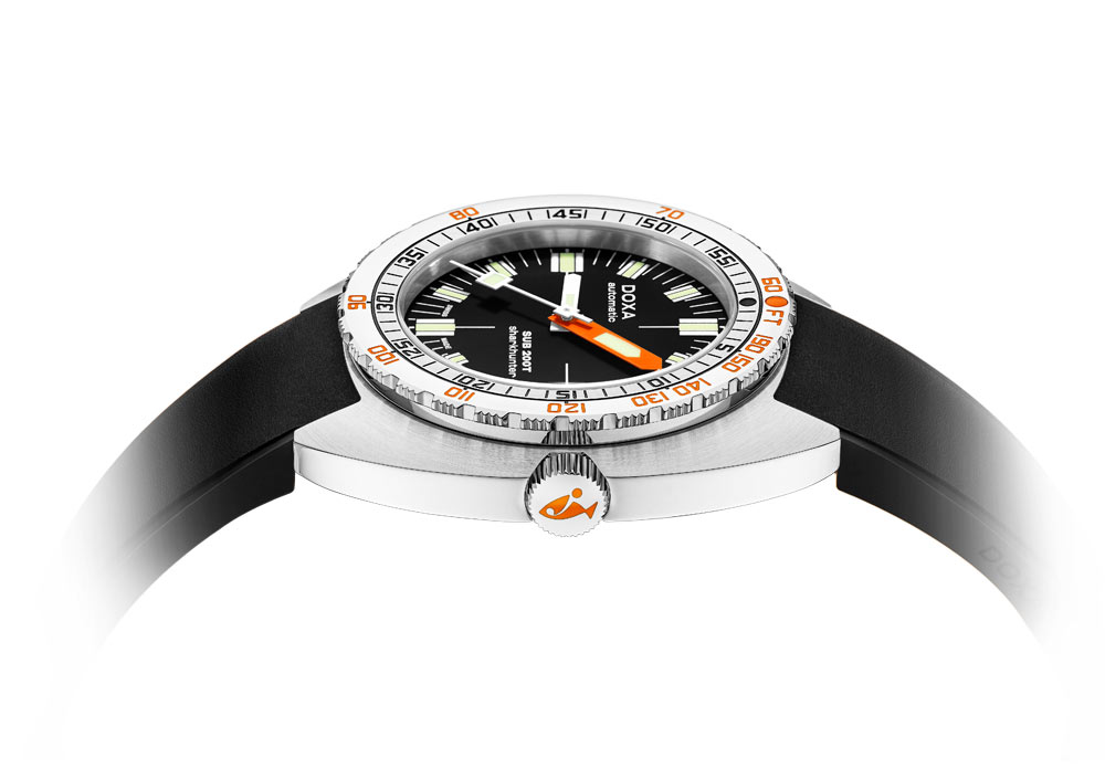 Značka DOXA představila novou interpretaci designu číselníku, jejímž cílem je modernější vizuální přítomnost na zápěstí. Ciferník chráněný safírovým sklem odolným proti poškrábání s antireflexní vrstvou je v intenzivní černé barvě. Všechny ukazatele související s potápěním byly vylepšeny: minutová ručička byla zvětšena, takže je snazší sledovat ubíhající čas při ponoření. Hloubková stupnice na patentované otočné lunetě spolu s hroty zaručuje perfektní čitelnost a zároveň vyjadřuje obavu o bezpečnost každého divere. Ručičky a indexy mají povrchovou úpravu Super-LumiNova® zajišťující optimální čitelnost i za špatných světelných podmínek. Pánské hodinky Doxa SUB 200T jsou nejen stylové a sportovní hodinky, ale také solidní společník pro sofistikovaného gentlemana. Skvěle se hodí k elegantnímu i sportovnímu stylu a je nenahraditelným doplňkem každého šatníku.