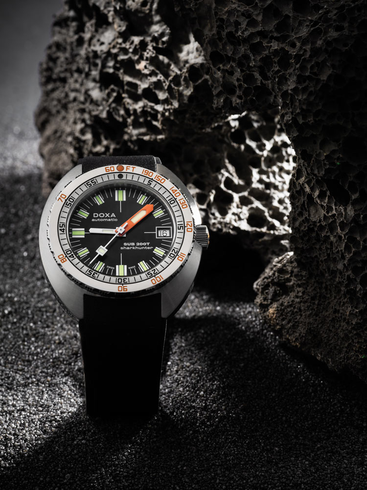Švýcarský výrobce hodinek Doxa s hrdostí představuje další přírůstek do své renomované kolekce diverských hodinek SUB. Diverské hodinky Doxa SUB 200T Sharkhunter 804.10.101.20 byly vytvořeny pro nadšence do objevování podmořského světa a nabízejí jim bezkonkurenční čitelnost a spolehlivost. Jedná se o profesionální hodinky, které budou perfektně fungovat v rukou jak zkušeným diverům, tak i nadšencům do vodních dobrodružství. Tento model se vyznačuje nejen výjimečnou čitelností, ale také snadným ovládáním a mimořádnou odolností, což z něj činí nepostradatelný nástroj pro milovníky hlubin. Hodinky Doxa na gumovém řemínku se mohou pochlubit všemi technickými inovacemi, díky kterým jsou SUB známé a oceňované od jejich debutu v roce 1967.
