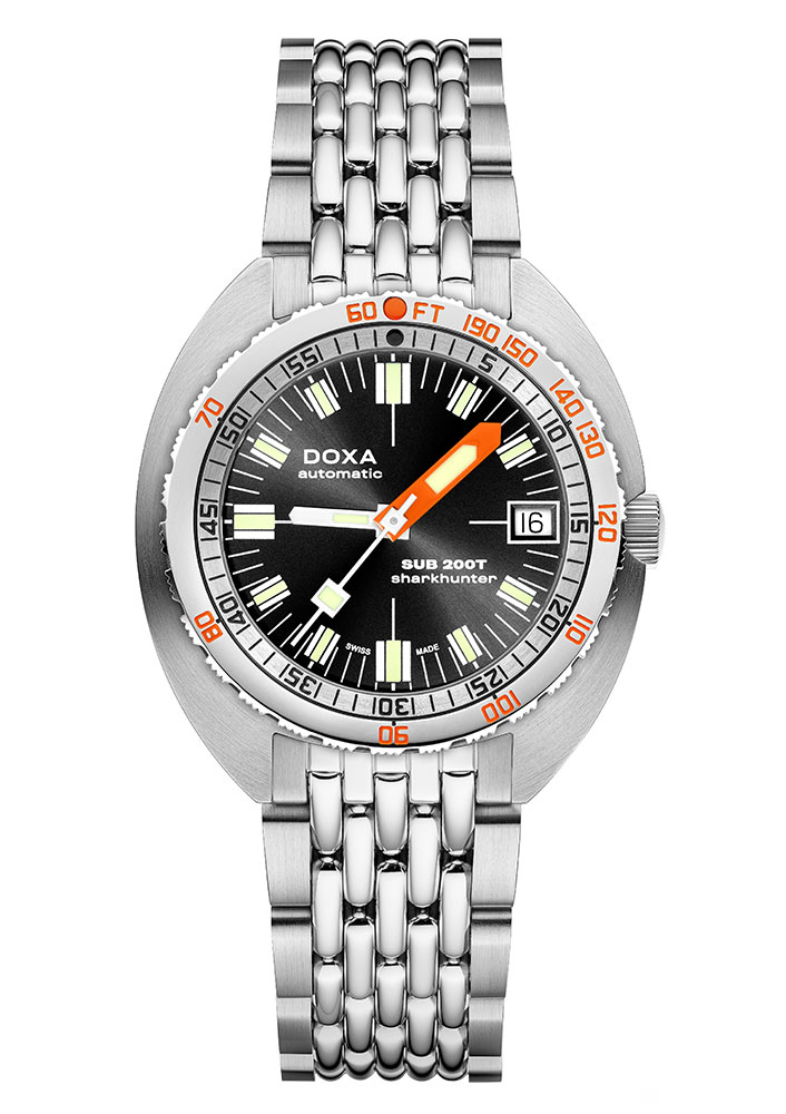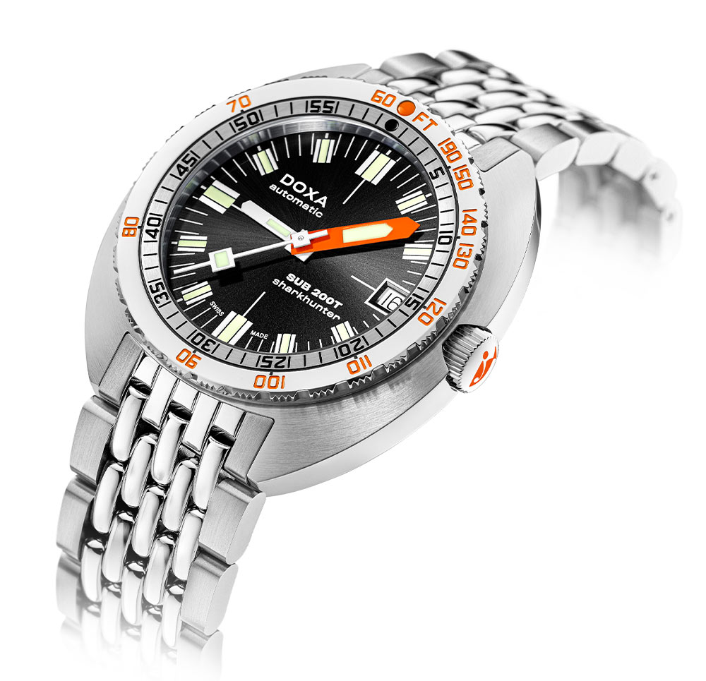 <Švýcarská hodinářská značka Doxa s potěšením představuje další díl své kolekce diverských hodinek SUB. Jedná se o diverské hodinky s extrémně čitelným ciferníkem jako stvořené pro nadšence objevování podmořského světa. Doxa SUB 200T Sharkhunter 804.10.101S.10 jsou profesionální hodinky, které jsou perfektní pro profesionály i amatéry, a to díky své čitelnosti, snadnému použití a výjimečné odolnosti zajištěné těmi nejkvalitnějšími materiály. Kolekce SUB 200T Doxa se může pochlubit všemi technickými funkcemi, které proslavily SUB od jejich debutu v roce 1967.