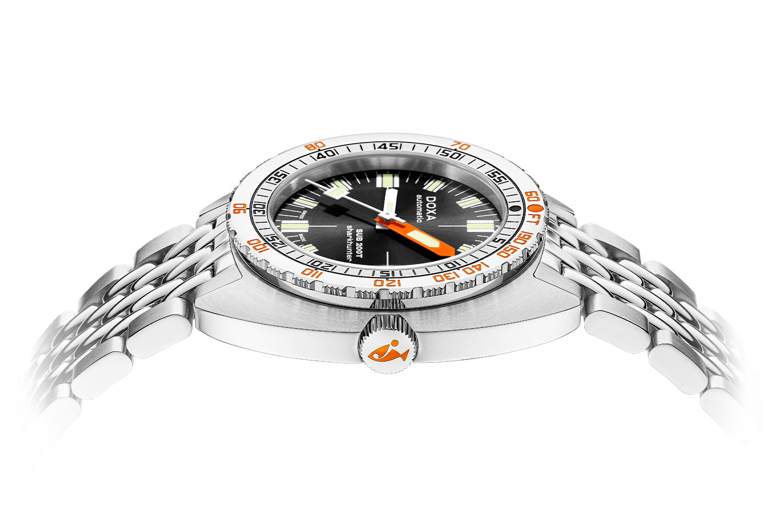 Značka DOXA upravila design ciferníku, aby dosáhla modernějšího vzhledu na zápěstí. Ciferník je chráněn safírovým sklem odolným proti poškrábání s antireflexní vrstvou a je k dispozici v slunečné černé barvě. Všechny metriky související s potápěním byly mírně vylepšeny. Minutová ručička je zvětšená, což usnadňuje sledování ubíhajícího času při ponoření. Hloubková stupnice na patentované otočné lunetě v kombinaci s ručičkami je nejen skvěle čitelná, ale také zajišťuje bezpečnost každého divere. Ručičky a indexy mají povrchovou úpravu Super-LumiNova® pro optimální čitelnost i za špatných světelných podmínek. Pánské hodinky Doxa SUB 200T jsou stylové, sportovní a pevné hodinky pro sofistikovaného gentlemana. Bude dokonalým doplňkem každého elegantního i sportovního šatníku.