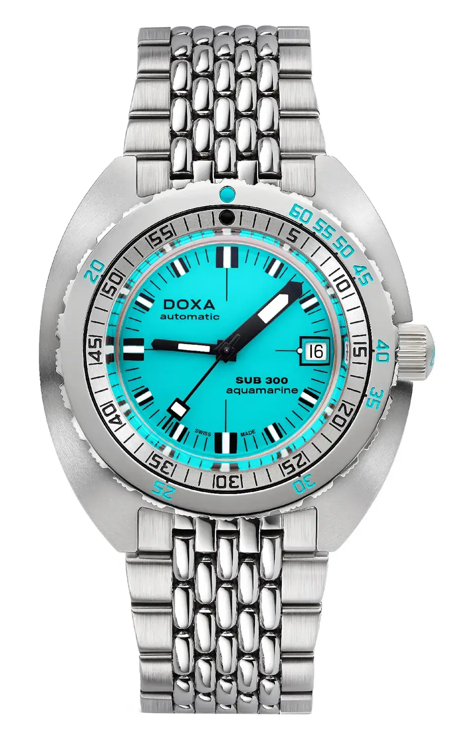 Jako kývnutí na dědictví je aktuální model automatických diverských hodinek SUB 300 zakončen safírovým sklíčkem odolným proti poškrábání s antireflexní vrstvou. Má stejný tvar kopule jako plexisklo přítomné v originálu z roku 1967. Všechny diverské značky na hodinkách Doxa Aquamarine jsou opatřeny luminiscenční vrstvou Super-LumiNova® pro vynikající čitelnost za snížené viditelnosti.