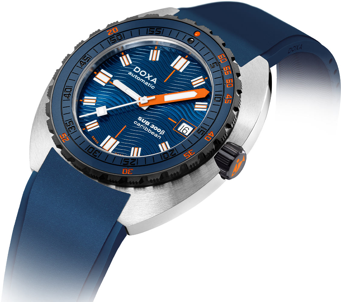 Již v roce 1967 uvedla švýcarská hodinářská značka DOXA na trh průkopnický koncept SUB. Díky průlomové a radikální inovaci se kolekce hodinek SUB stala výbornou volbou i pro profesionální divere. Díky použití hodinek SUB americkým námořnictvem se tato kolekce stala legendou, která byla snadno rozpoznatelná. Obrovský vliv na to měly pevné materiály a barvy, díky kterým byla data snadno čitelná. Švýcarská značka Doxa dnes představuje hodinky Sub Beta 300 Caribbean 830.10.201.32. Mistrovská kombinace funkce a stylu, která nově definuje podstatu sportovních hodinek. Na základě konceptu, že skutečné sportovní hodinky by měly fungovat perfektně v jakékoli situaci, si SUB 300β zachovává všechny své základní funkce nástrojových hodinek a zároveň přijímá nádech stylu a elegance.
