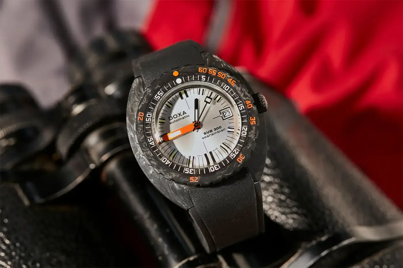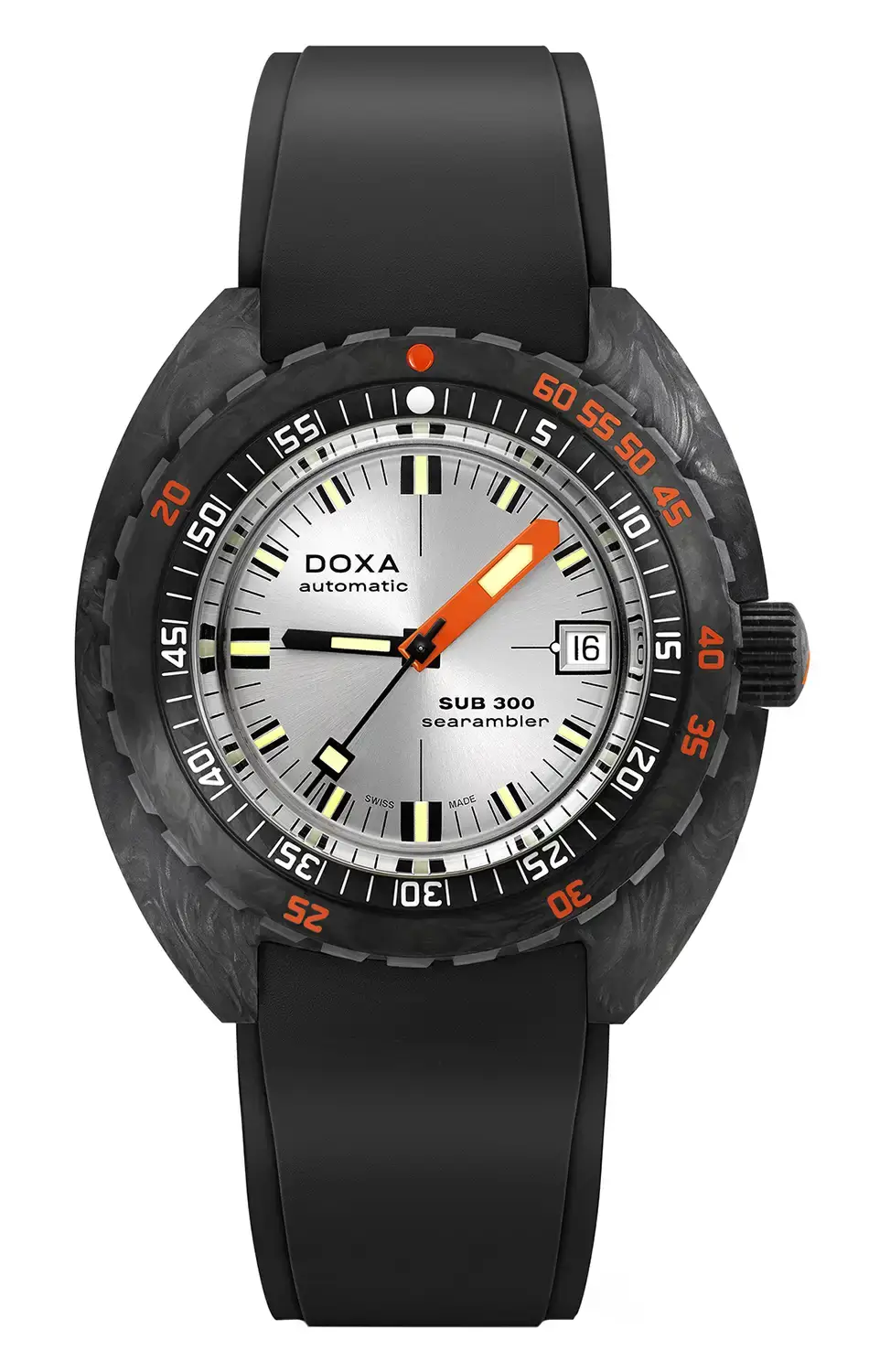 Doxa SUB 300 CARBON jsou ultralehké, profesionální náramkové diverské hodinky , které nabízejí fascinující spojení špičkové technologie a estetiky přenesené z legendárního a průlomového SUB 300. Všechny hodinky v kolekci Doxy SUB 300 CARBON jsou vybaveny kovaným pouzdro z uhlíkových vláken, titanová komora pro odolnost s vysoce funkčním ciferníkem a barevně sladěným pryžovým páskem FKM.