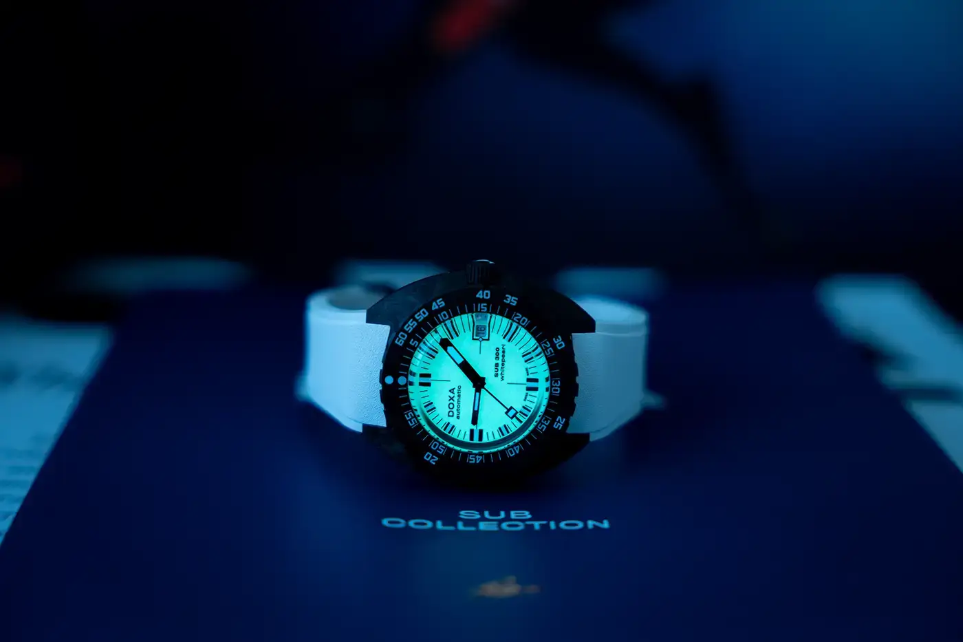 Výše uvedené diverské hodinky řady SUB 300 se vyznačují tlakově odolným karbonovým pouzdrem o rozměrech 42,5 mm x 45 mm , které kromě toho, že je lehké, a proto praktické, chrání Machineek a šroubovací korunku s exkluzivním symbolem ryby Doxy. Jeho třída vodotěsnosti je 300 metrů , což odpovídá asi 980 stopám. Ouška pouzdra jsou připevněna k bílému pruhu s názvem DOXA na obou stranách, nastavitelným prodloužením a černou skládací sponou potaženou PVD zdobenou luxusním symbolem DOXA Fish. Díky jedinečnému ráčnovému mechanismu zabudovanému do inovativní, flexibilní spony jsou hodinky snadno nastavitelné na zápěstí v neoprenu.