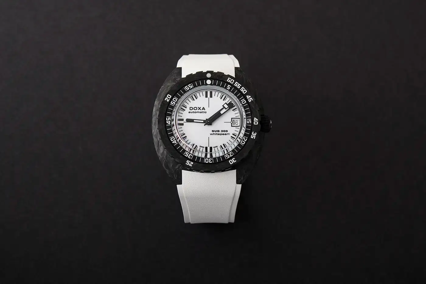 Pánské diverské hodinky Doxa Carbon Whitepearl z kovaných uhlíkových vláken zůstávají věrné svému Originu a zároveň kultivují ostřejší, techničtější a tedy městský design. Vezmeme-li legendu do budoucnosti, nabízí vysoký výkon, který splňuje vysoké standardy dnešních hodinek pro divere. Tyto automatické diverské hodinky Doxa se zaměřují na pokročilý, lehký materiál a nabízejí funkčnost, která je neocenitelná jak při použití pod vodou, tak při každodenním používání. A co víc, výše uvedený model je vybaven ciferníkem kompletně potaženým luminiscenční pastou Super-LumiNova®, která poskytuje úžasný efekt jak z hlediska vizuálního zážitku, tak z hlediska pragmatických výhod.