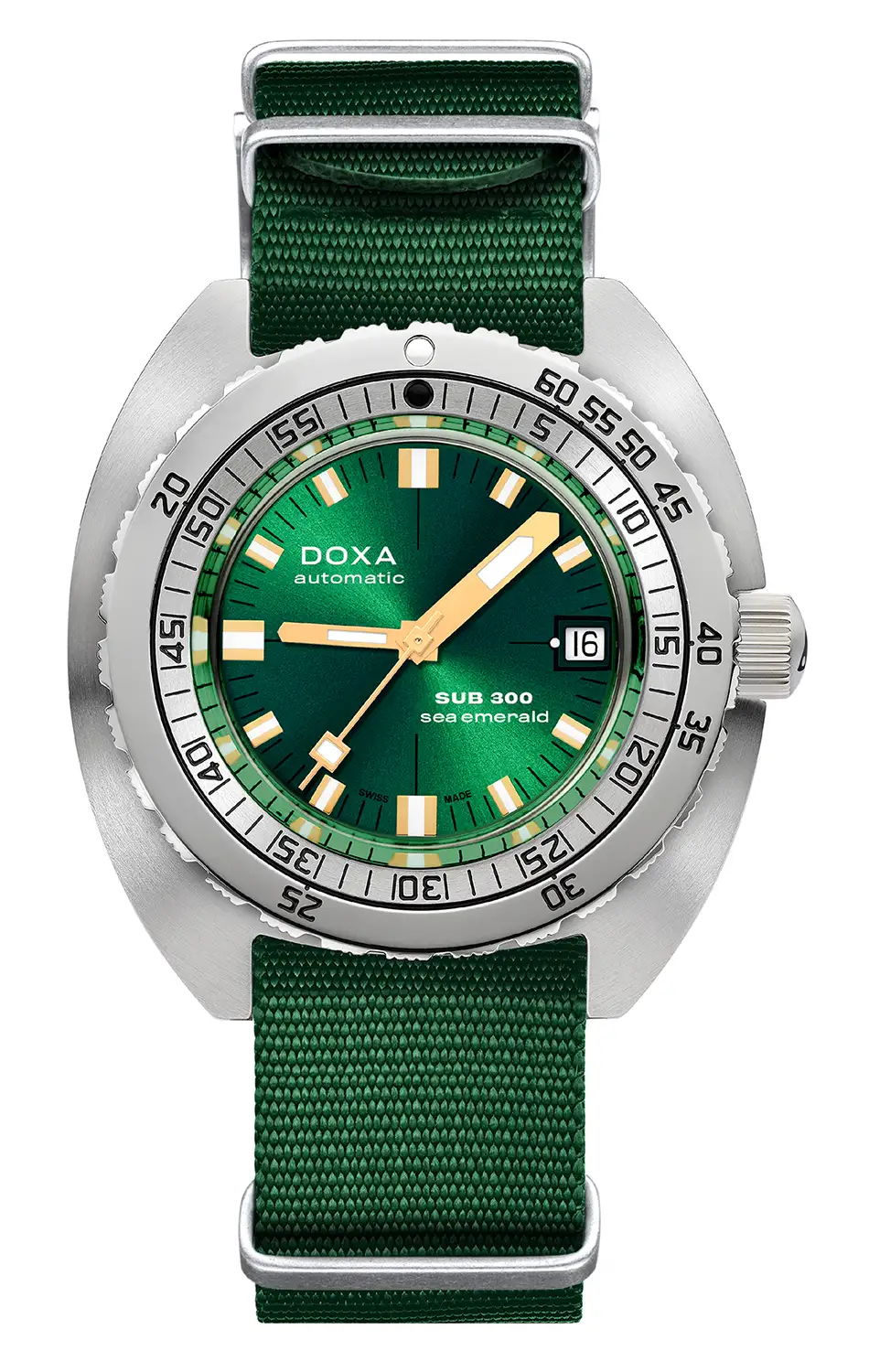 Nejen estetika, ale i funkčnost je klíčovým prvkem tohoto modelu – luminofory Super-LumiNova® na ručičkách a indexech zaručují čitelnost za jakýchkoliv podmínek. Automatické potápěčské hodinky Doxa SUB 300 Sea Emerald jsou dostupné s textilním NATO páskem v zelené barvě, který má prodloužení pro potápěčský oblek. Díky tomu model spojuje ducha dobrodružství s elegancí a vzdává hold tradici DOXA, která již více než půl století inspiruje potápěče po celém světě, jak amatéry, tak profesionály. SUB 300 Sea Emerald je víc než jen hodinky – je to manifest lásky k objevování hlubin a vyjádření stylu odpovídajícího moderním trendům.