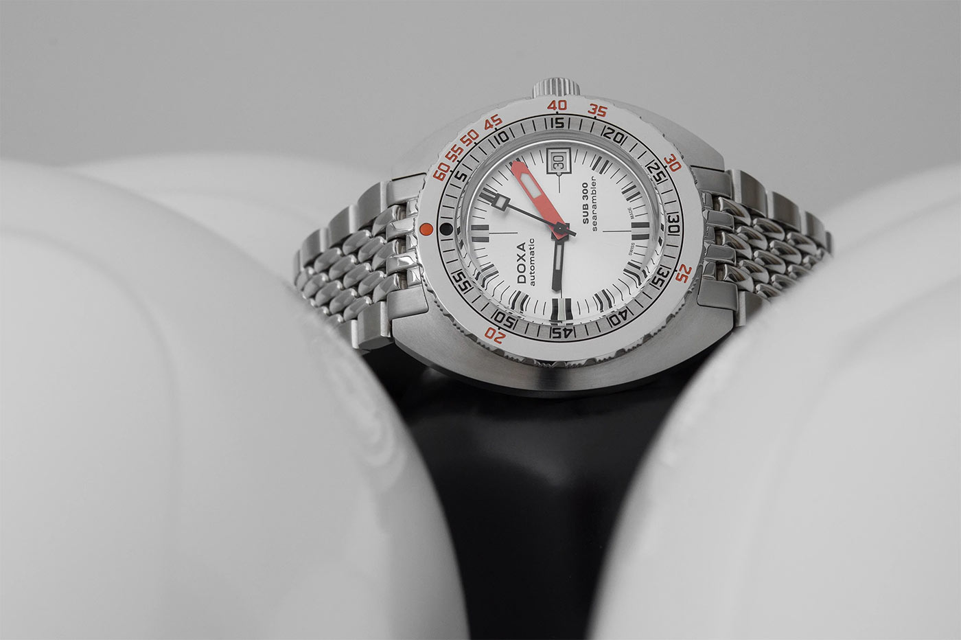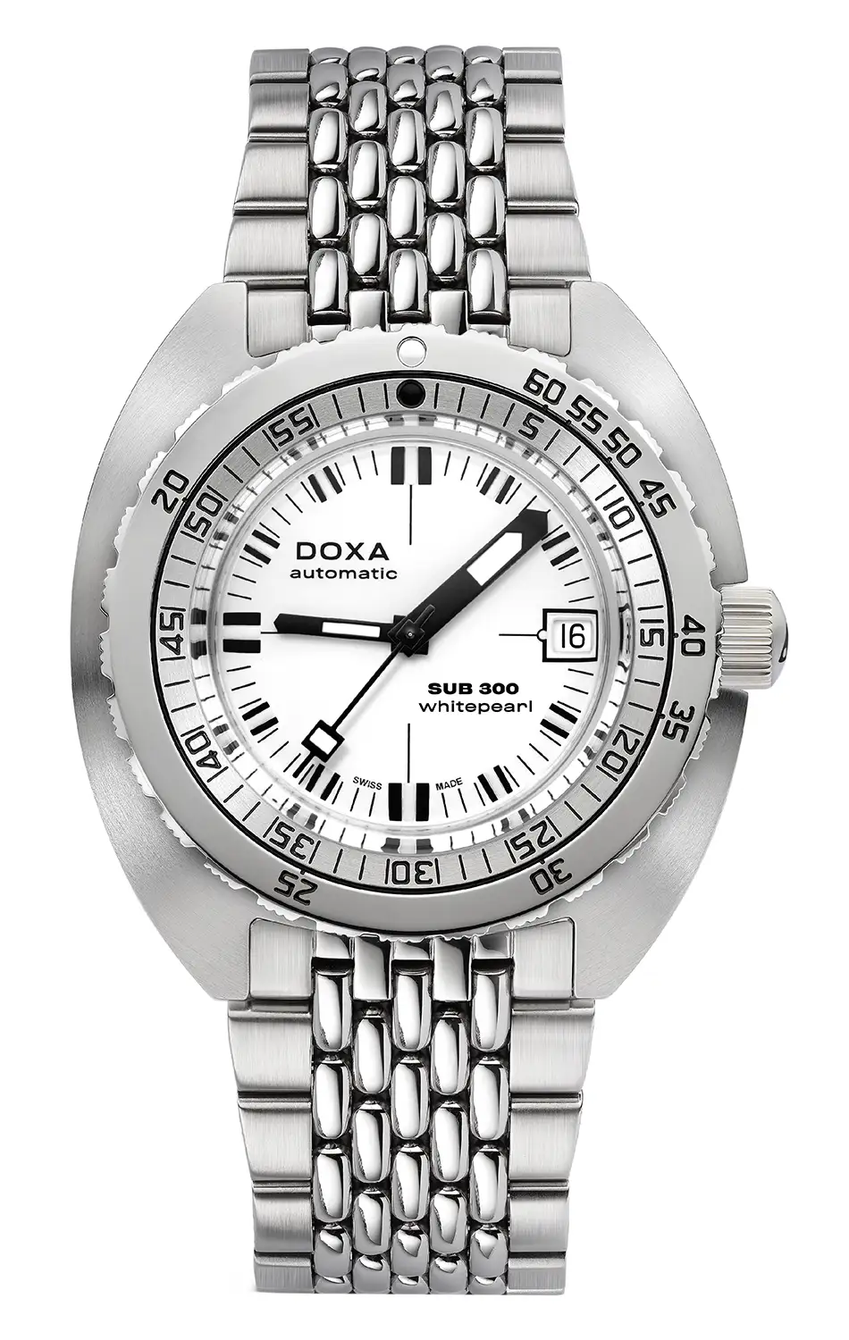 Jako kývnutí na dědictví je aktuální model automatických diverských hodinek SUB 300 zakončen safírovým sklíčkem odolným proti poškrábání s antireflexní vrstvou. Má stejný tvar kopule jako plexisklo přítomné v originálu z roku 1967. Všechny diverské značky na hodinkách Doxa Whitepearl jsou opatřeny luminiscenční vrstvou Super-LumiNova® pro vynikající čitelnost za snížené viditelnosti.