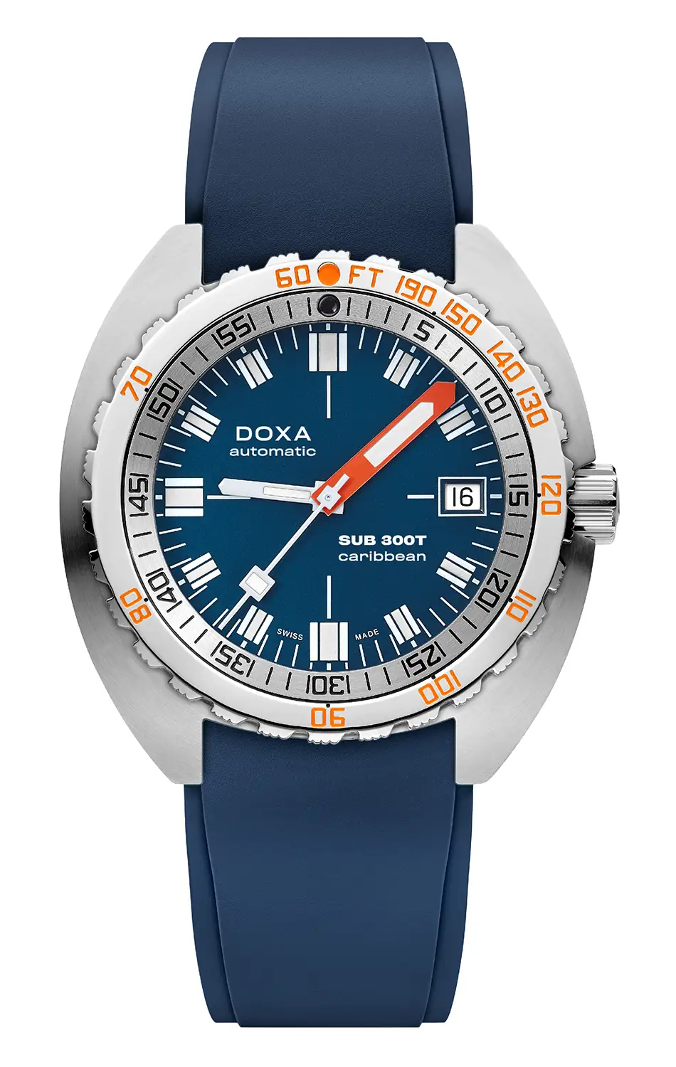 Luxusní a profesionální diverské hodinky Doxa SUB 300T jsou moderní reinterpretací ikonických SUB 300T Conquistador představených v roce 1968. Vybaven patentovaným integrovaným jednosměrným otočným bezdekompresním diverským kroužkem, který vyjadřuje hloubku ve stopách a dobu ponoru v minutách. Pouzdro, které je přizpůsobeno k ponoření do extrémní hloubky 1200 metrů , splní každou výzvu. Všechna ponorná značení mají vložky Super-LumiNova®, díky kterým jsou optimálně vidět po setmění a v hloubkách.