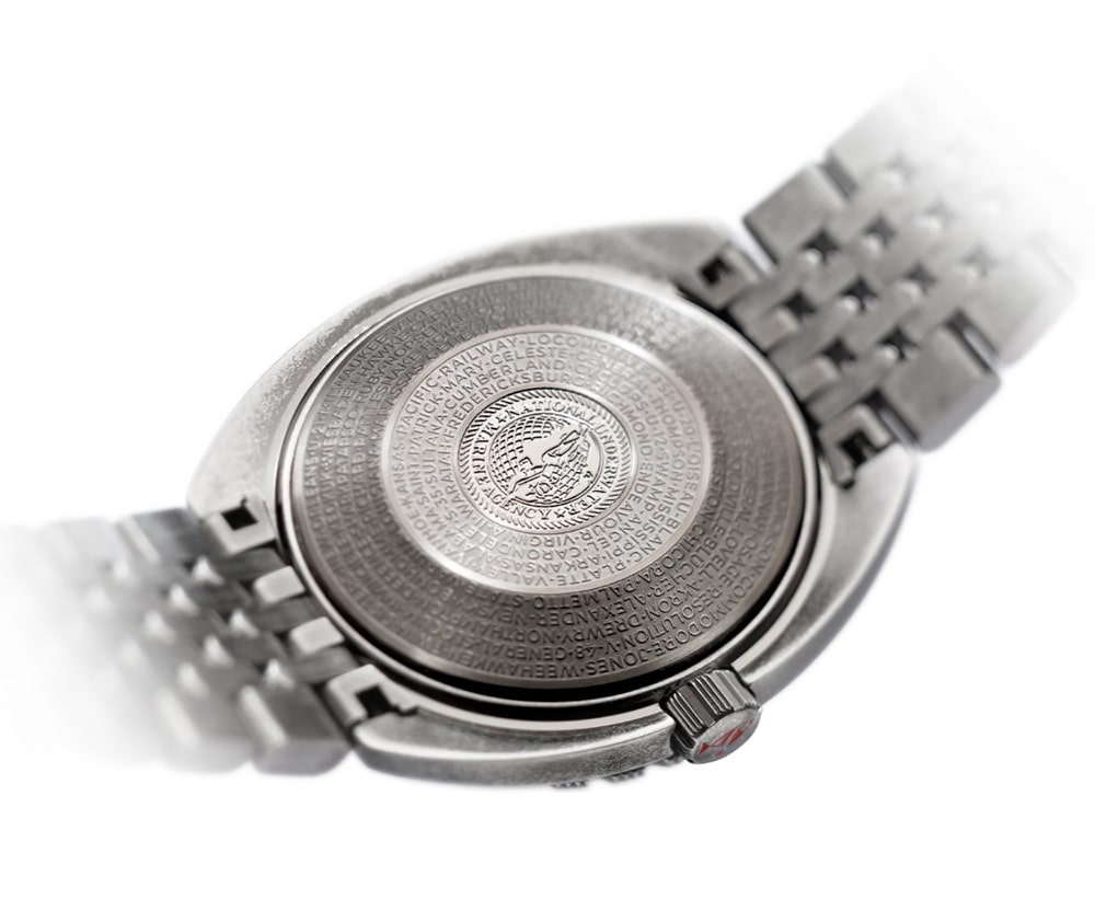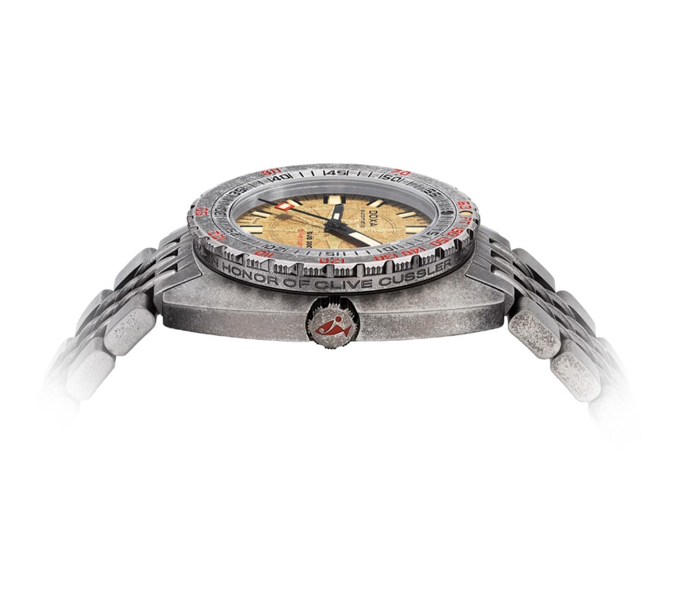Clive Cussler byl světově proslulý romanopisec, mořský průzkumník a zakladatel Národní agentury pro podvody a moře (NUMA) . NUMA je nezisková organizace věnující se studiu námořní a námořní historie, hledání ztracených lodí historického významu. Na šroubovací zadní straně pouzdra jsou vyryta jména vraků lodí a dalších historických artefaktů, které byly objeveny nebo studovány NUMA.