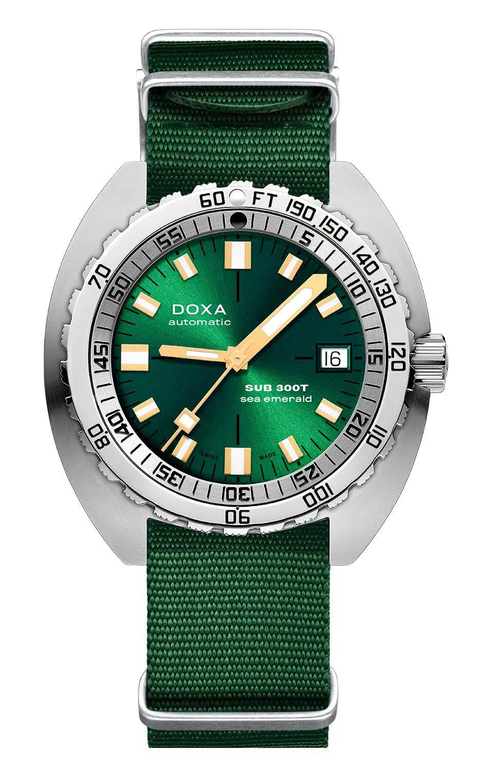 Hodinky pro profesionální potápění Doxa SUB 300T Sea Emerald 840.10.131.26-N jsou moderní interpretací legendárního modelu SUB 300T Conquistador, který v roce 1968 jako první potápěčské hodinky pro širokou veřejnost přinesl inovativní prvky, jako je heliový ventil. Nová verze, představená v září 2019, vzdává hold originálu spojením klasické estetiky s moderními technologickými vymoženostmi. V roce 2024 během Geneva Watch Days Doxa proklamovala živou zelenou „Sea Emerald” jako osmou oficiální barvu rodiny SUB, čímž obohatila kolekci SUB 300T o nový odstín ciferníku, který dokonale zachycuje ducha mořských dobrodružství a zdůrazňuje jedinečné propojení značky s oceány.