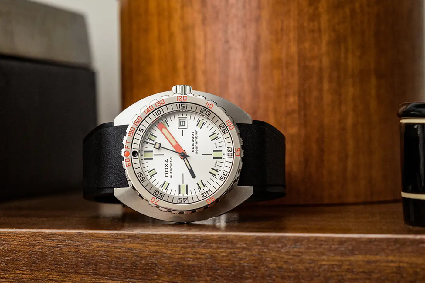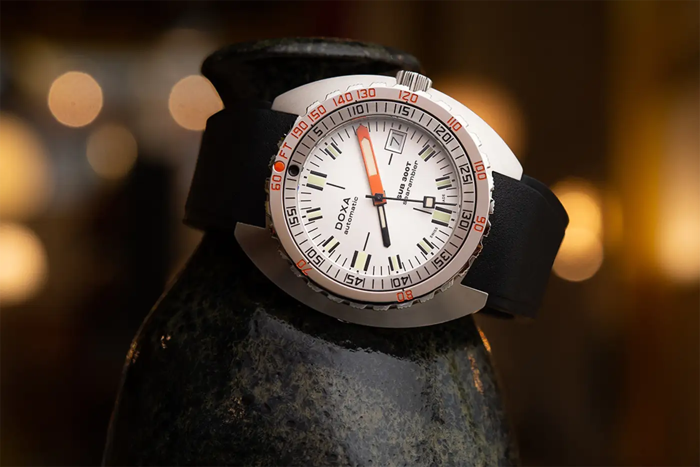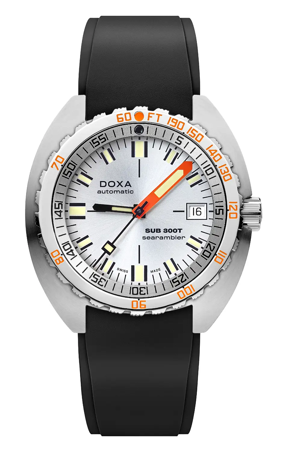Luxusní a profesionální diverské hodinky Doxa SUB 300T jsou moderní reinterpretací ikonických SUB 300T Conquistador představených v roce 1968. Vybaven patentovaným integrovaným jednosměrným otočným bezdekompresním diverským kroužkem, který vyjadřuje hloubku ve stopách a dobu ponoru v minutách. Pouzdro, které je přizpůsobeno k ponoření do extrémní hloubky 1200 metrů , splní každou výzvu. Všechna ponorná značení mají vložky Super-LumiNova®, díky kterým jsou optimálně vidět po setmění a v hloubkách.
