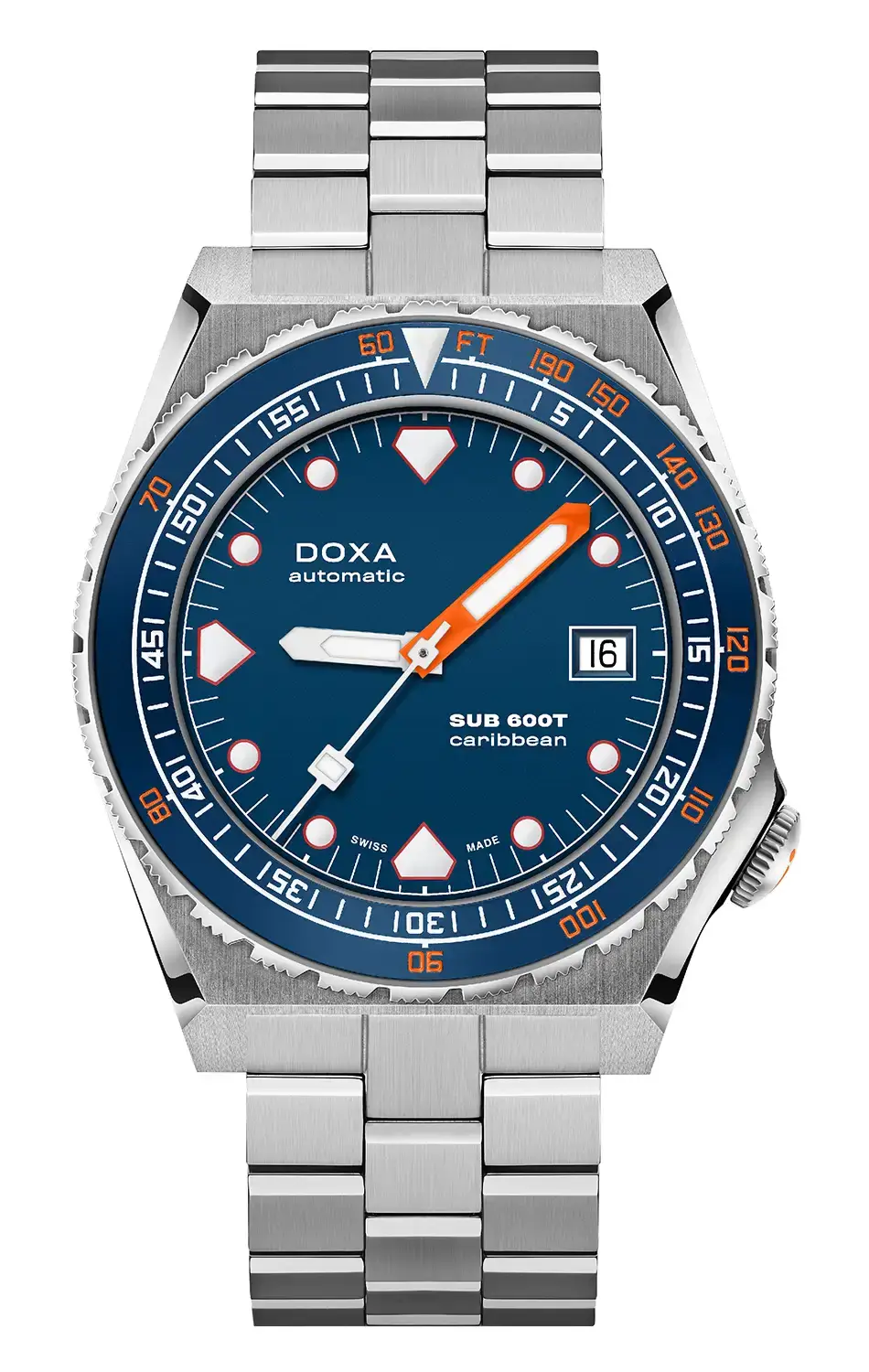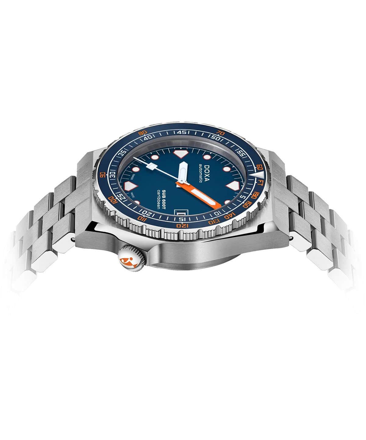 DOXA SUB 600T je znovuzrozena v roce 2021 – o více než 40 let později a dokáže víc než jen znovu navštívit kapitolu napsanou dávno. Značka vzdává hold ikonickému modelu SUB 600T novým příběhem, který právě vzniká. Po velkém úspěchu limitované edice titanových diverských hodinek Doxa SUB 600T Pacific Blue představuje DOXA SUB 600T v neomezené verzi, aby obohatila řadu profesionálních diverských hodinek DOXA SUB. Znovuzrozené diverské hodinky Doxa SUB 600T Caribbean jsou model dostupný v odolném pouzdře z nerezové oceli 316L s modrou keramickou lunetou , uprostřed které je dobře čitelný tmavě modrý číselník.