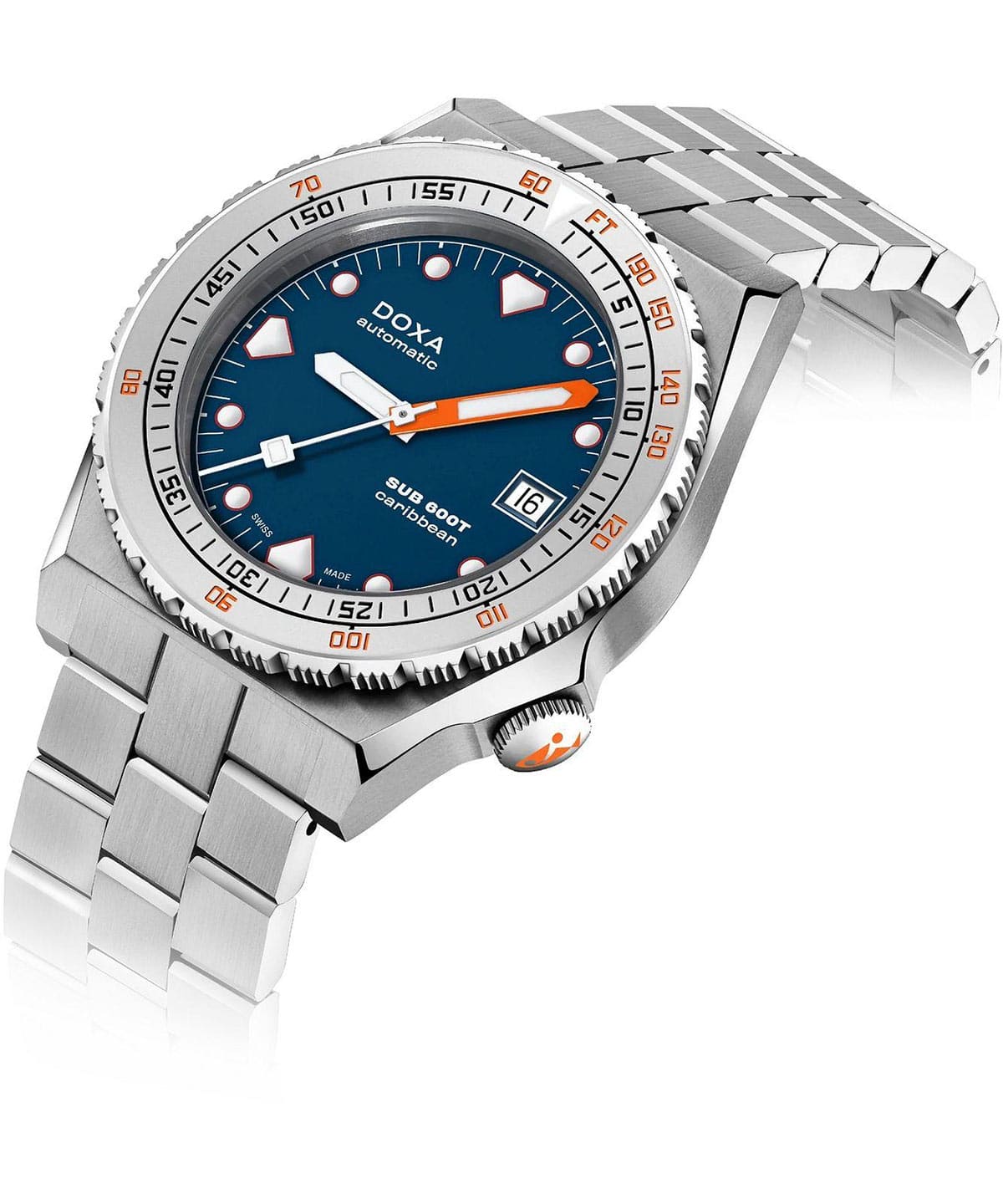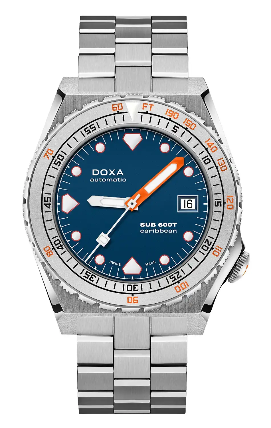 DOXA SUB 600T je znovuzrozena v roce 2021 – o více než 40 let později a dokáže víc než jen znovu navštívit kapitolu napsanou dávno. Značka vzdává hold ikonickému modelu SUB 600T novým příběhem, který právě vzniká. Po velkém úspěchu limitované edice titanových diverských hodinek Doxa SUB 600T Pacific Blue představuje DOXA SUB 600T v neomezené verzi, aby obohatila řadu profesionálních diverských hodinek DOXA SUB. Znovuzrozené diverské hodinky Doxa SUB 600T Caribbean jsou model dostupný v odolném pouzdře z nerezové oceli 316L a s ocelovým rámem s pískovanou úpravou, uprostřed kterého je dobře čitelný modrý číselník.