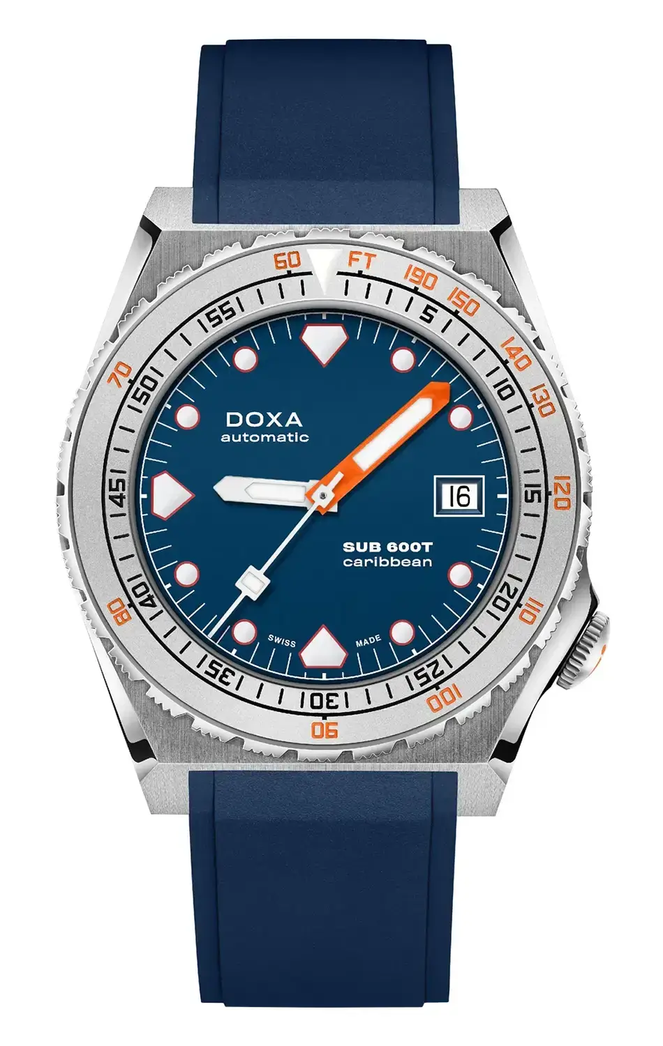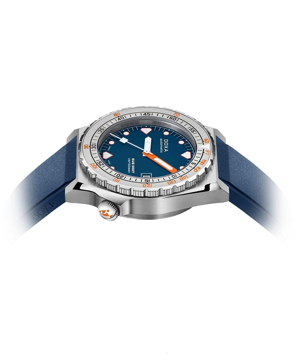 DOXA SUB 600T je znovuzrozena v roce 2021 – o více než 40 let později a dokáže víc než jen znovu navštívit kapitolu napsanou dávno. Značka vzdává hold ikonickému modelu SUB 600T novým příběhem, který právě vzniká. Po velkém úspěchu limitované edice titanových diverských hodinek Doxa SUB 600T Pacific Blue představuje DOXA SUB 600T v neomezené verzi, aby obohatila řadu profesionálních diverských hodinek DOXA SUB. Znovuzrozené diverské hodinky Doxa SUB 600T Caribbean jsou model dostupný v odolném pouzdře z nerezové oceli 316L, s tmavě modrým páskem z kvalitní FKM pryže a rámem z pískované oceli se snadno čitelným modrým ciferníkem uvnitř.