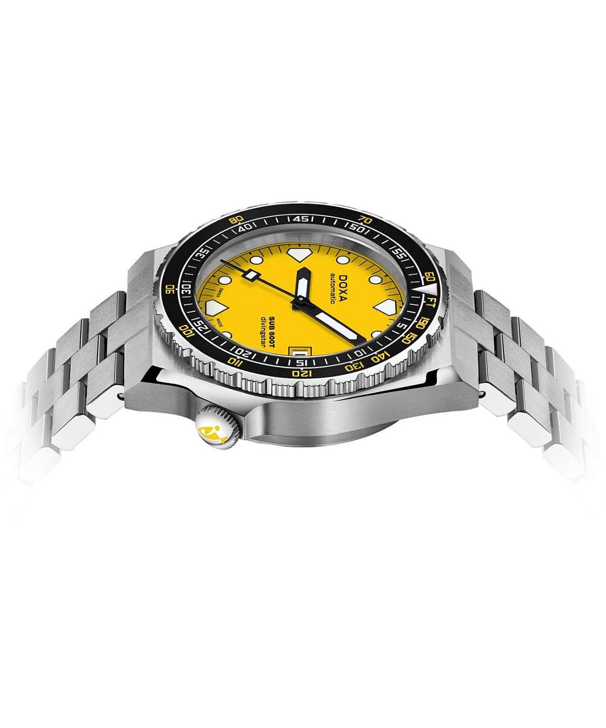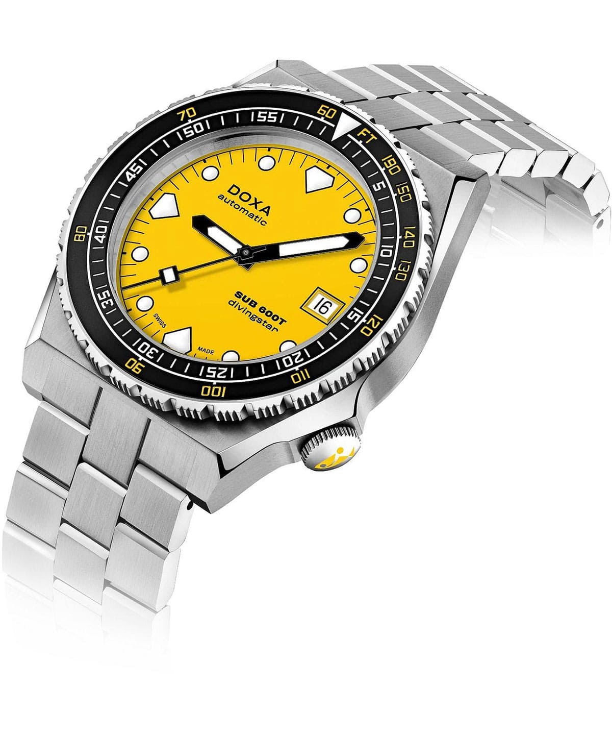 DOXA SUB 600T je znovuzrozena v roce 2021 – o více než 40 let později a dokáže víc než jen znovu navštívit kapitolu napsanou dávno. Značka vzdává hold ikonickému modelu SUB 600T novým příběhem, který právě vzniká. Po velkém úspěchu limitované edice titanových diverských hodinek Doxa SUB 600T Pacific Blue představuje DOXA SUB 600T v neomezené verzi, aby obohatila řadu profesionálních diverských hodinek DOXA SUB. Znovuzrozené diverské hodinky Doxa SUB 600T Divingstar jsou model dostupný v odolném pouzdře z nerezové oceli 316L s černým keramickým rámečkem , uprostřed kterého je dobře čitelný žlutý číselník.