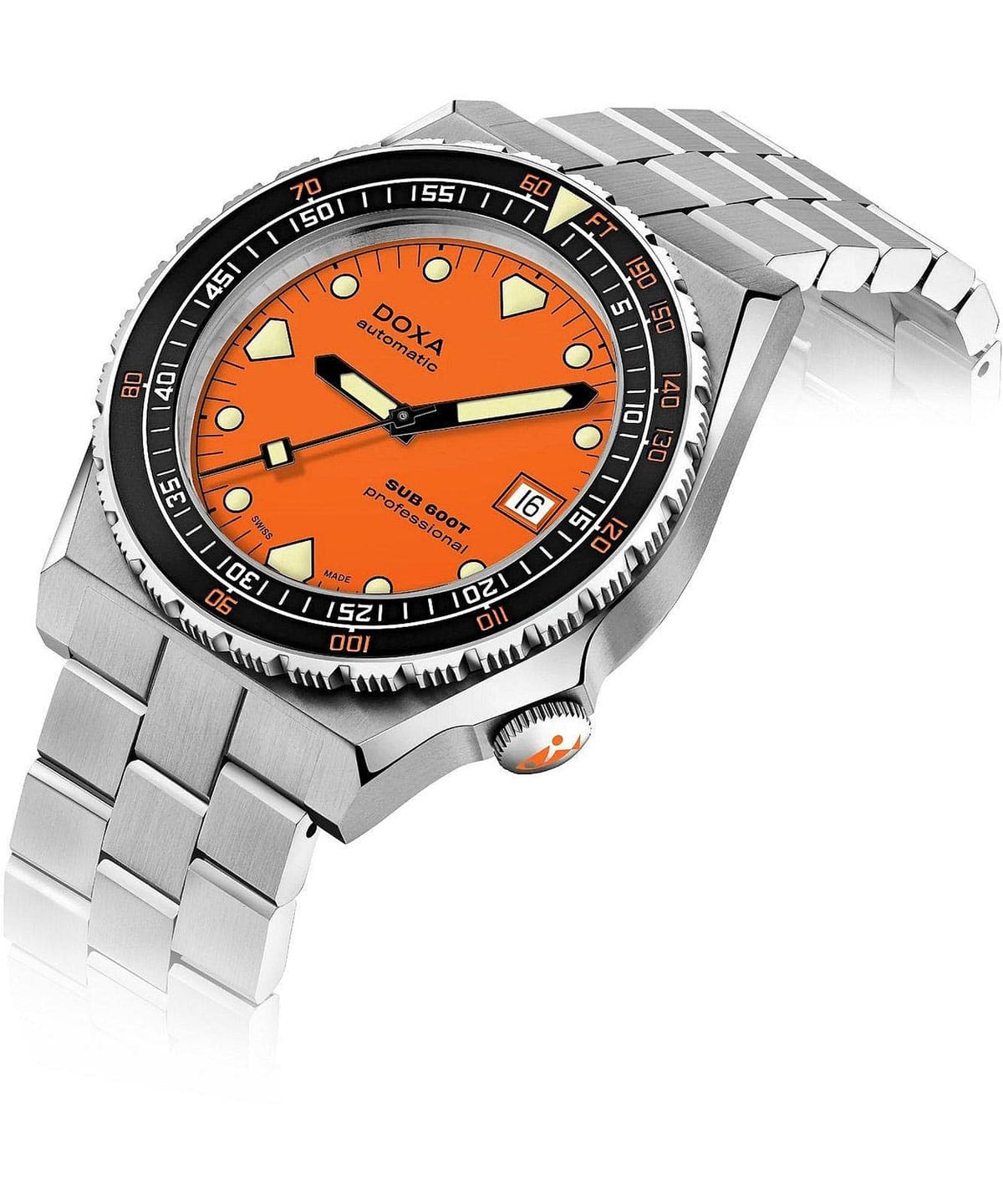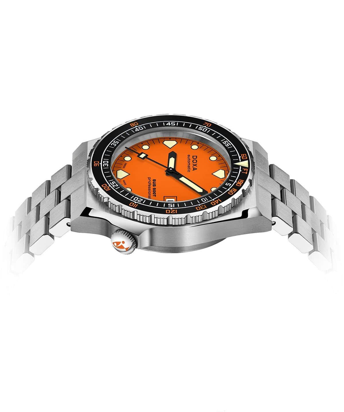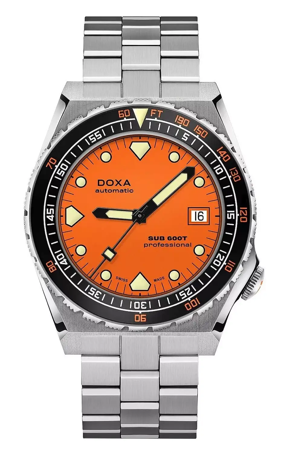 DOXA SUB 600T je znovuzrozena v roce 2021 – o více než 40 let později a dokáže víc než jen znovu navštívit kapitolu napsanou dávno. Značka vzdává hold ikonickému modelu SUB 600T novým příběhem, který právě vzniká. Po velkém úspěchu limitované edice titanových diverských hodinek Doxa SUB 600T Pacific Blue představuje DOXA SUB 600T v neomezené verzi, aby obohatila řadu profesionálních diverských hodinek DOXA SUB. Znovuzrozené diverské hodinky Doxa SUB 600T Professional jsou model dostupný v odolném pouzdře z nerezové oceli 316L s černým keramickým rámečkem , uprostřed kterého je oranžový ciferník, nejlépe čitelný pod vodou.