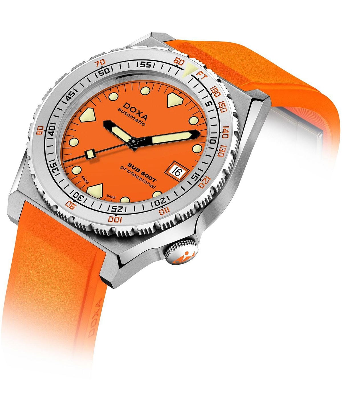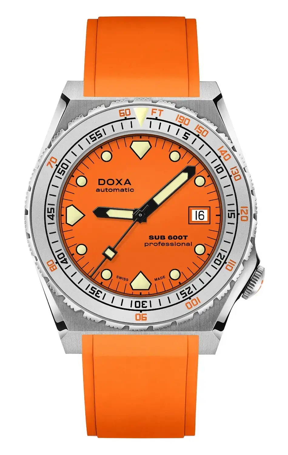 DOXA SUB 600T je znovuzrozena v roce 2021 – o více než 40 let později a dokáže víc než jen znovu navštívit kapitolu napsanou dávno. Značka vzdává hold ikonickému modelu SUB 600T novým příběhem, který právě vzniká. Po velkém úspěchu limitované edice titanových diverských hodinek Doxa SUB 600T Pacific Blue představuje DOXA SUB 600T v neomezené verzi, aby obohatila řadu profesionálních diverských hodinek DOXA SUB. Znovuzrozené diverské hodinky Doxa SUB 600T Professional jsou model dostupný v odolném nerezovém pouzdře 316L, s oranžovým páskem z kvalitní FKM pryže a ocelovým rámem s pískovanou úpravou, uprostřed kterého je oranžový ciferník , který je pod vodou nejčitelnější.