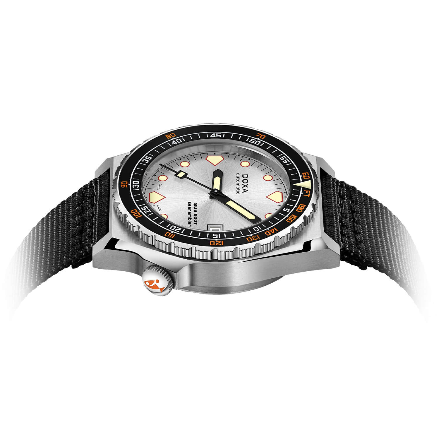 O přesný chod se stará automatický strojek SW200-1 Swiss Made, jehož srdce bije frekvencí 28 800 kyvů za hodinu. S rezervou chodu až 41 hodin a spolehlivostí prověřenou v nejtěžších podmínkách vás tyto hodinky nezklamou ani v extrémních situacích. Doxa SUB 600T Automatic 861.10.021.20-N na nato pásku je poctou funkčnosti a stylu – nástrojem, který nemusí nic dokazovat, protože mluví sám za sebe.