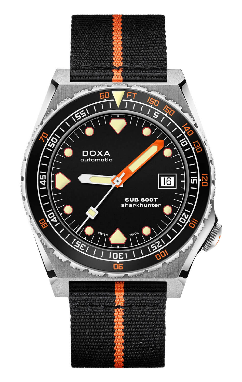 DOXA SUB 600T se znovu objevuje v roce 2021 – více než 40 let poté – a dělá něco víc než jen návrat k dřívějšímu kapitole. Značka vzdává hold ikonickému modelu SUB 600T s novým příběhem, který se píše právě teď. Po velkém úspěchu limitované edice potápěčských hodinek z titanu DOXA SUB 600T Pacific Blue představuje DOXA model SUB 600T v neomezené verzi, aby obohatila řadu profesionálních potápěčských hodinek DOXA SUB. Znovuzrozené potápěčské hodinky DOXA SUB 600T Sharkhunter 861.10.101.34-N jsou dostupné v odolném pouzdře z nerezové oceli 316L, s černým řemínkem z vysoce kvalitního materiálu NATO a s ocelovou lunetou s pískovanou úpravou, uvnitř které se nachází čitelný černý ciferník.