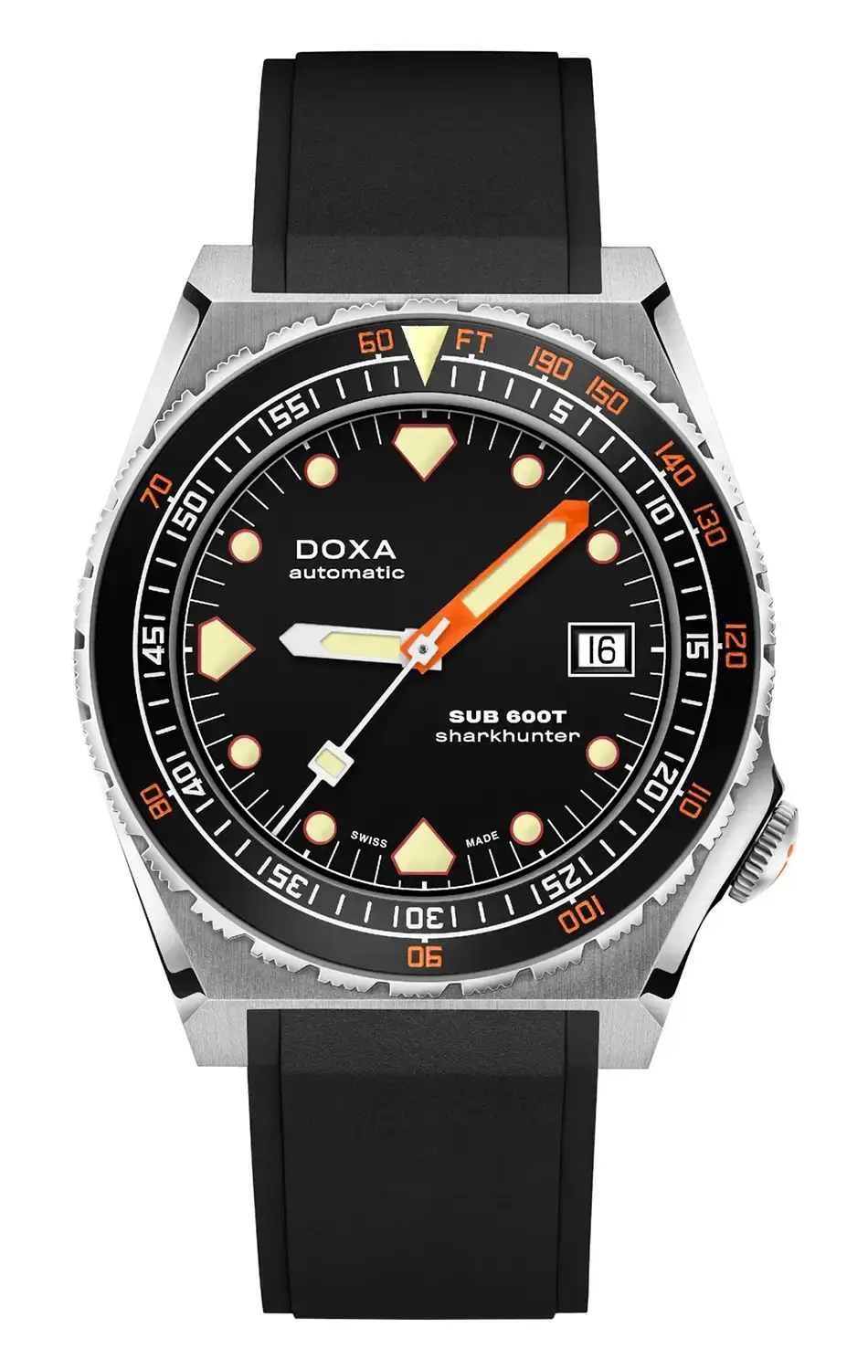 DOXA SUB 600T je znovuzrozena v roce 2021 – o více než 40 let později a dokáže víc než jen znovu navštívit kapitolu napsanou dávno. Značka vzdává hold ikonickému modelu SUB 600T novým příběhem, který právě vzniká. Po velkém úspěchu limitované edice titanových diverských hodinek Doxa SUB 600T Pacific Blue představuje DOXA SUB 600T v neomezené verzi, aby obohatila řadu profesionálních diverských hodinek DOXA SUB. Znovuzrozené diverské hodinky Doxa SUB 600T Sharkhunter jsou model dostupný v odolném pouzdře z nerezové oceli 316L, s černým páskem z kvalitní FKM pryže a keramickou lunetou se snadno čitelným černým ciferníkem uvnitř.