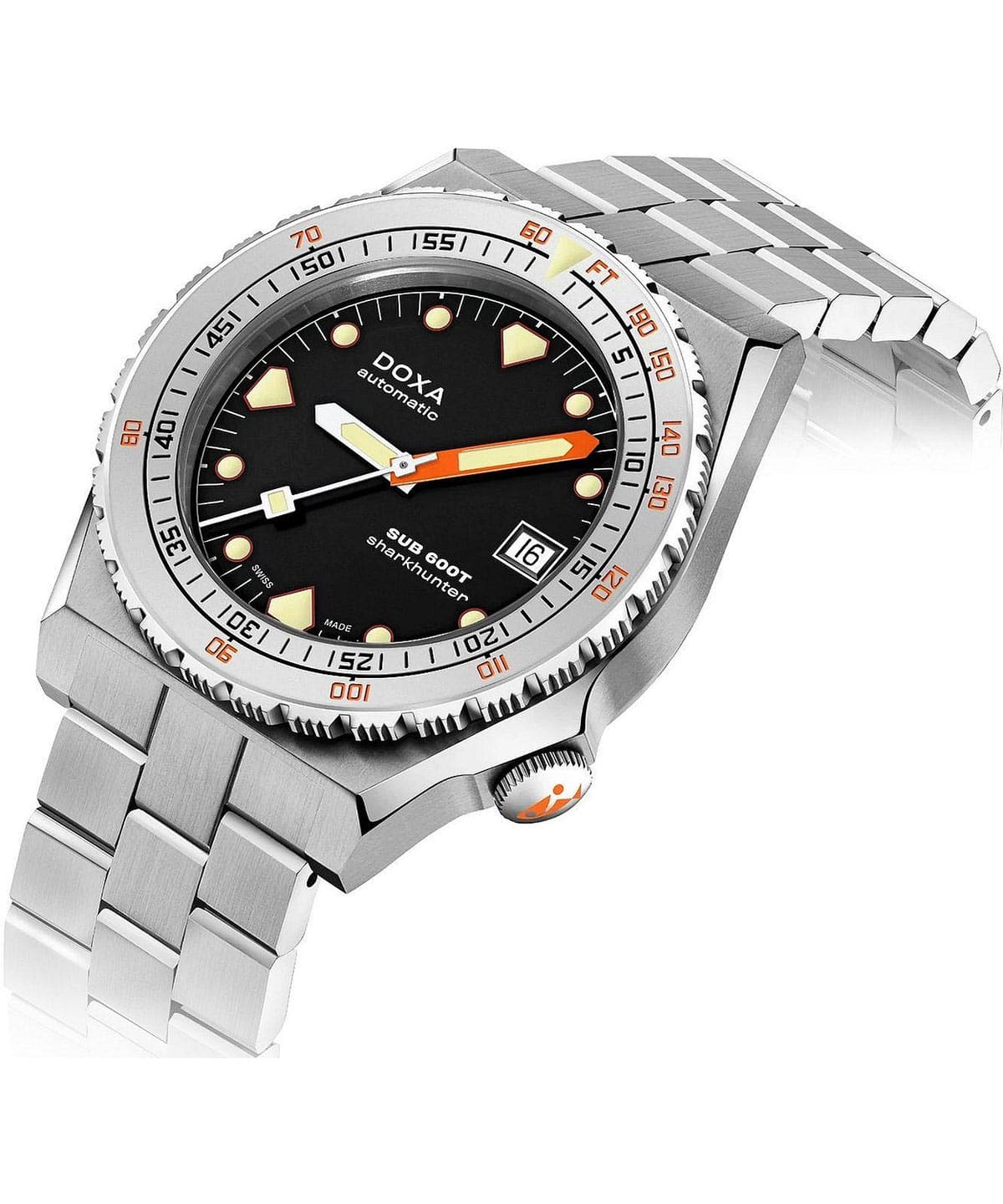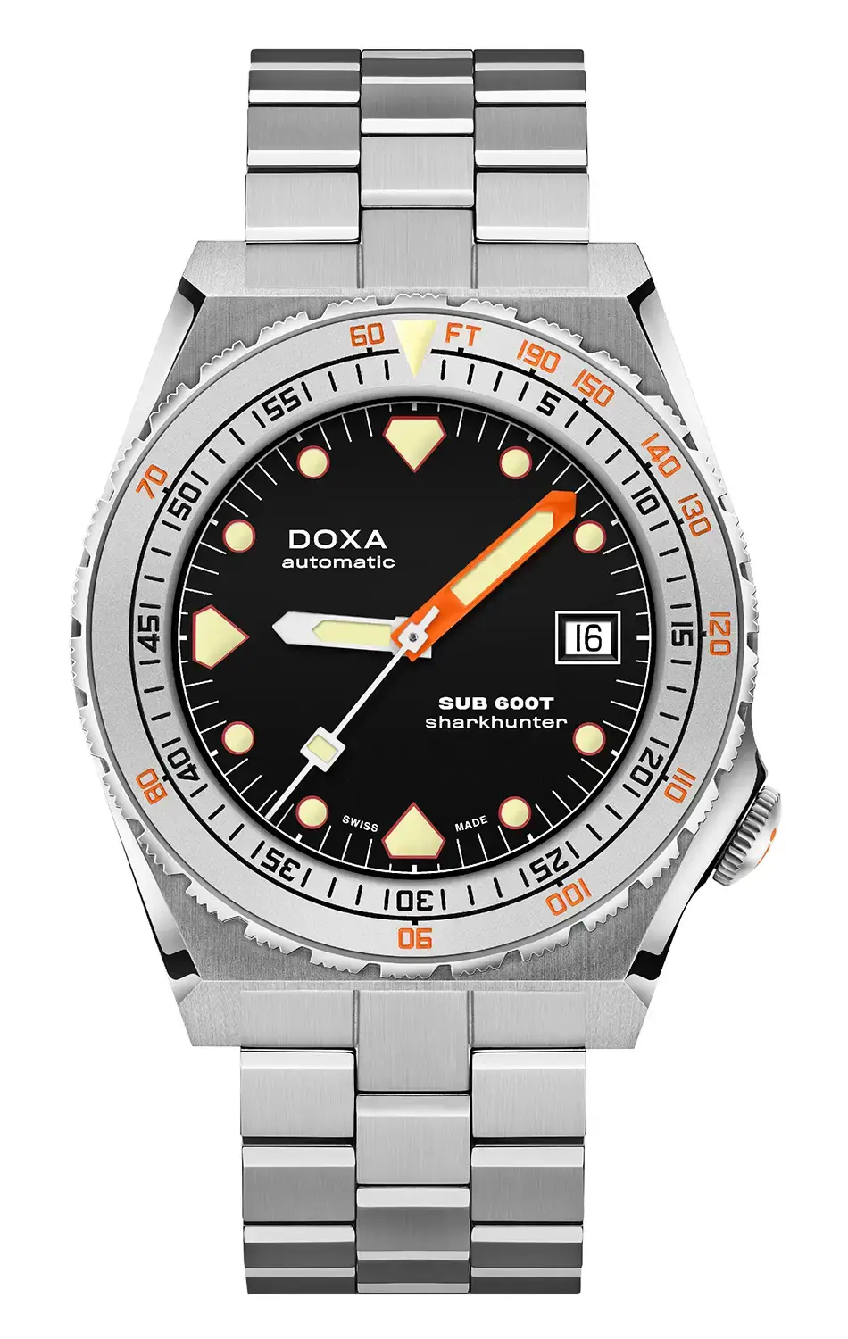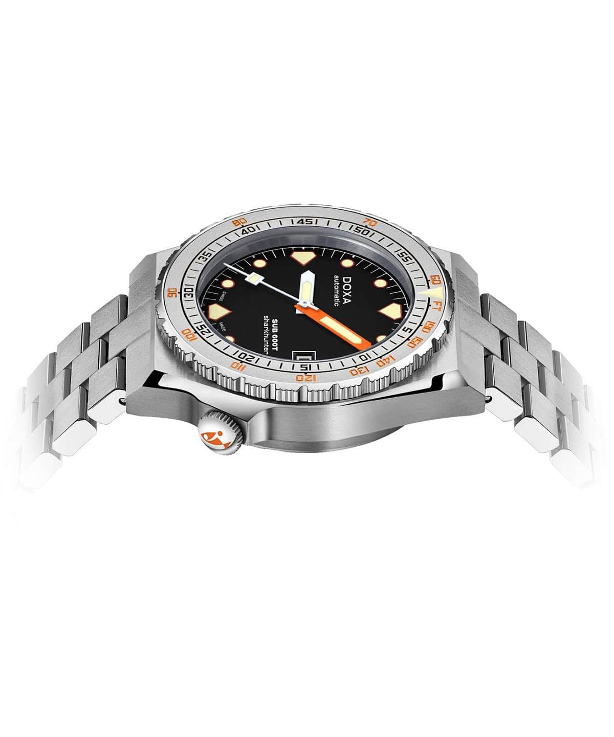 DOXA SUB 600T je znovuzrozena v roce 2021 – o více než 40 let později a dokáže víc než jen znovu navštívit kapitolu napsanou dávno. Značka vzdává hold ikonickému modelu SUB 600T novým příběhem, který právě vzniká. Po velkém úspěchu limitované edice titanových diverských hodinek Doxa SUB 600T Pacific Blue představuje DOXA SUB 600T v neomezené verzi, aby obohatila řadu profesionálních diverských hodinek DOXA SUB. Znovuzrozené diverské hodinky Doxa SUB 600T Sharkhunter jsou model dostupný v odolném nerezovém pouzdře 316L a s ocelovým rámem s pískovanou úpravou, uprostřed kterého je dobře čitelný černý ciferník.
