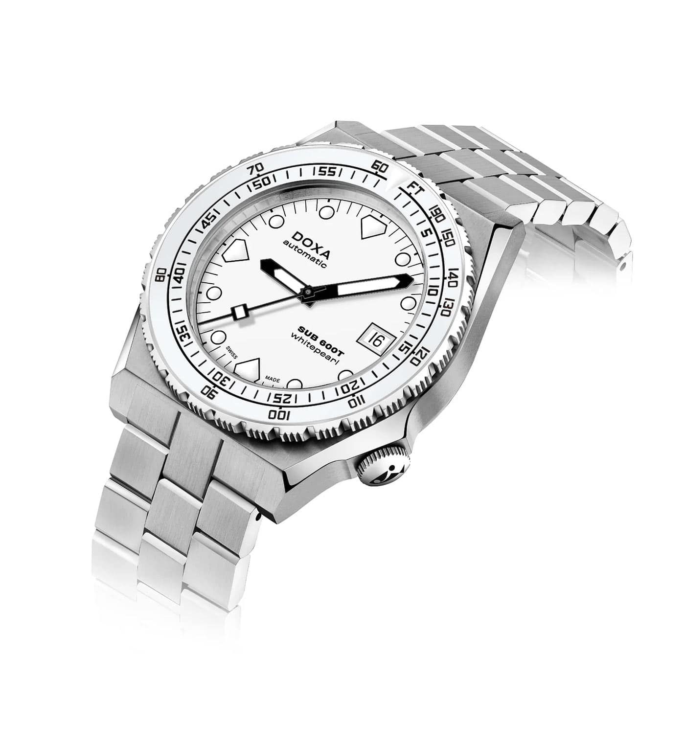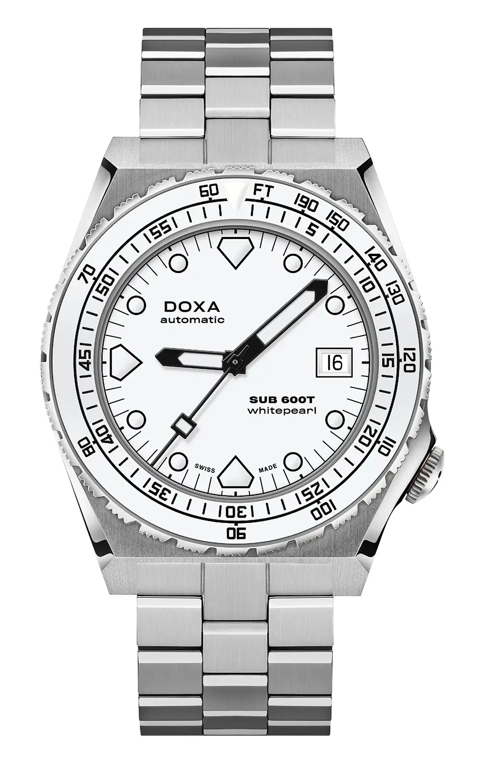 DOXA SUB 600T je znovuzrozena v roce 2021 – o více než 40 let později a dokáže víc než jen znovu navštívit kapitolu napsanou dávno. Značka vzdává hold ikonickému modelu SUB 600T novým příběhem, který právě vzniká. Po velkém úspěchu limitované edice titanových diverských hodinek Doxa SUB 600T Pacific Blue představuje DOXA SUB 600T v neomezené verzi, aby obohatila řadu profesionálních diverských hodinek DOXA SUB. Znovuzrozené diverské hodinky Doxa SUB 600T Whitepearl jsou modelem dostupným v odolném pouzdře z nerezové oceli 316L s bílou keramickou lunetou , uprostřed které je dobře čitelný bílý číselník.