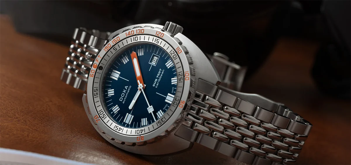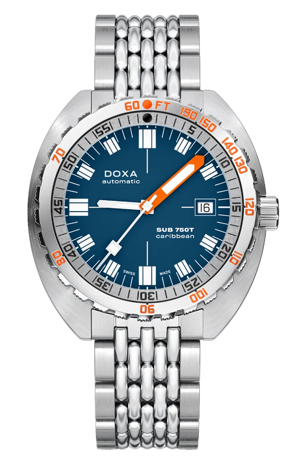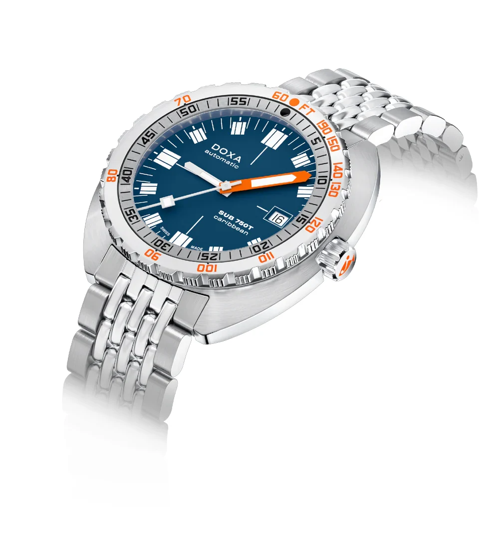 Doxa SUB 750T Caribbean na náramku jsou hodinky, které vznikly s ohledem na hloubky. Jsou to pracovní nástroj a zároveň symbol vášně pro objevování podmořského světa.